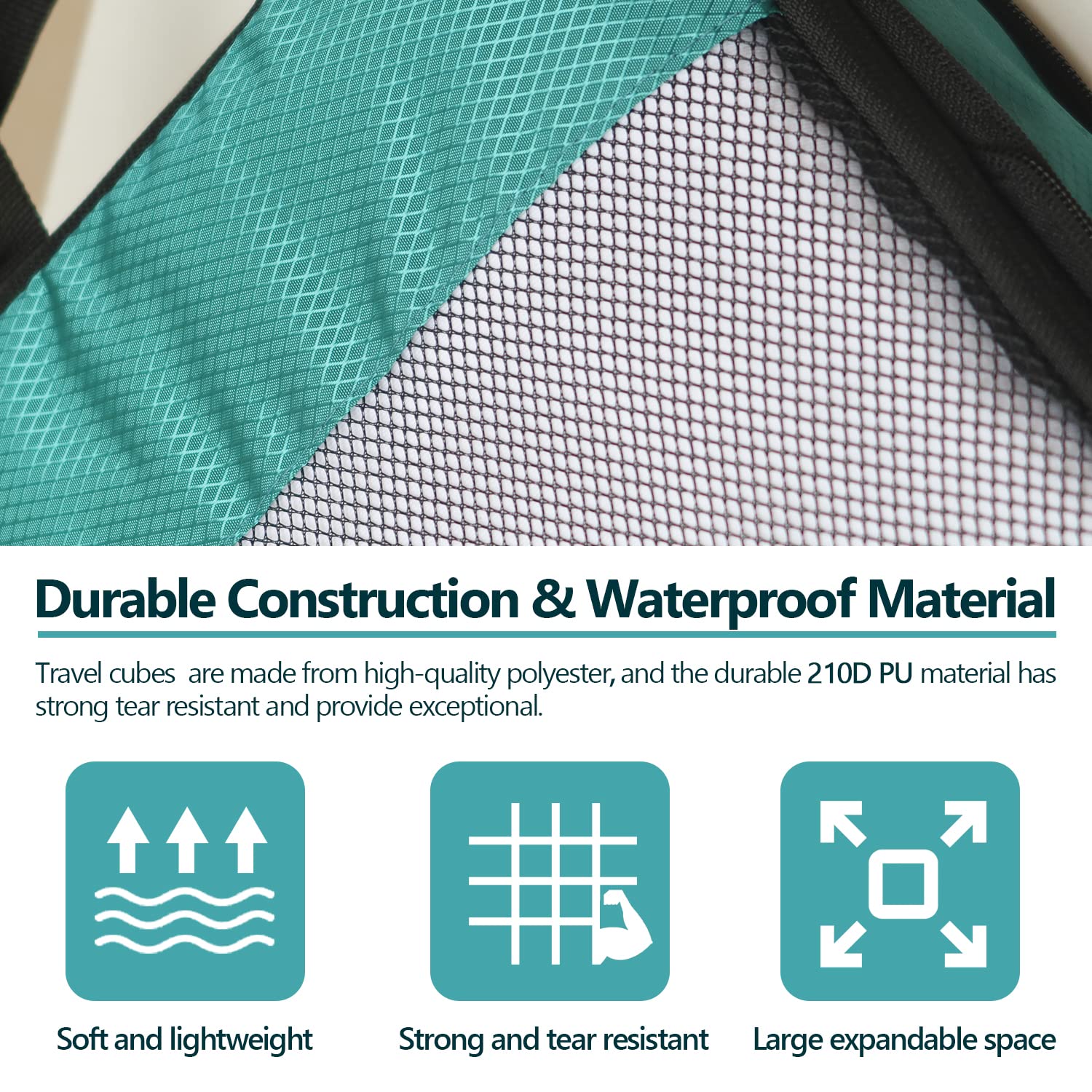 - 【Selected Premium Material】: The compression packing cube set is made of 210D diamond lattice waterproof polyester fabric, soft, lightweight, tear-resistant, and expandable. The smooth zipper makes this compression packing cube set easy to stretch and more durable.