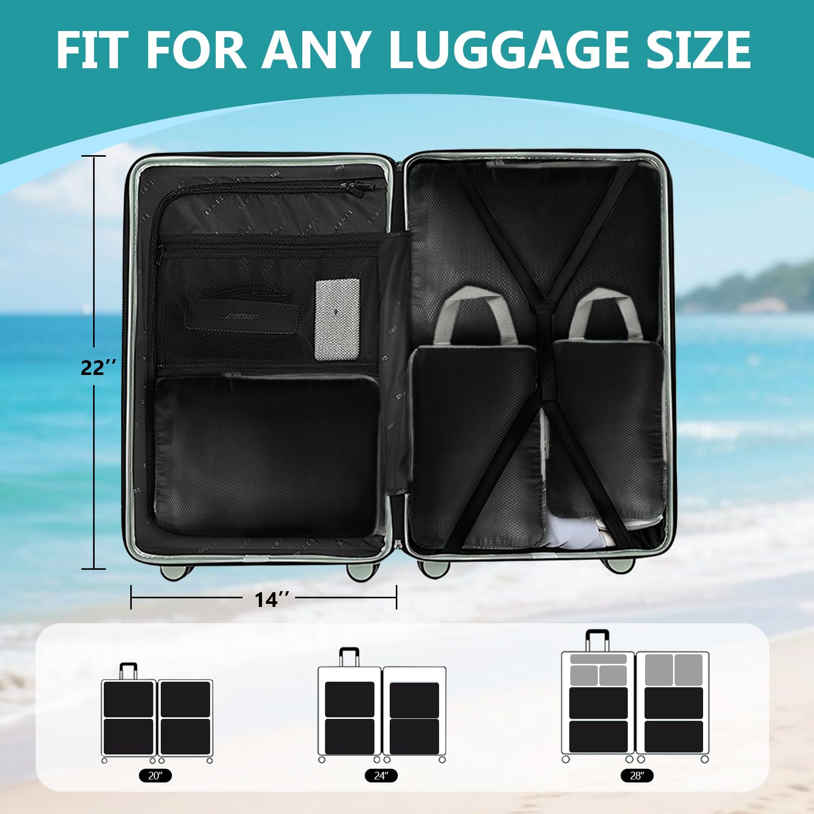 - 【4 Sizes for Every Packing Need】: Meet all packing needs with this 4 Set Compression Packing Cubes for Travel: XL (16"×12"×4") holds 2 coats, L (14"×10.5"×4") fits 3-4 sweaters, M (13"×9"×4") stores 4 jeans, and S (10"×8"×3.5") organizes 4 shirts + underwear—maximizing luggage space like no other Packing Cubes