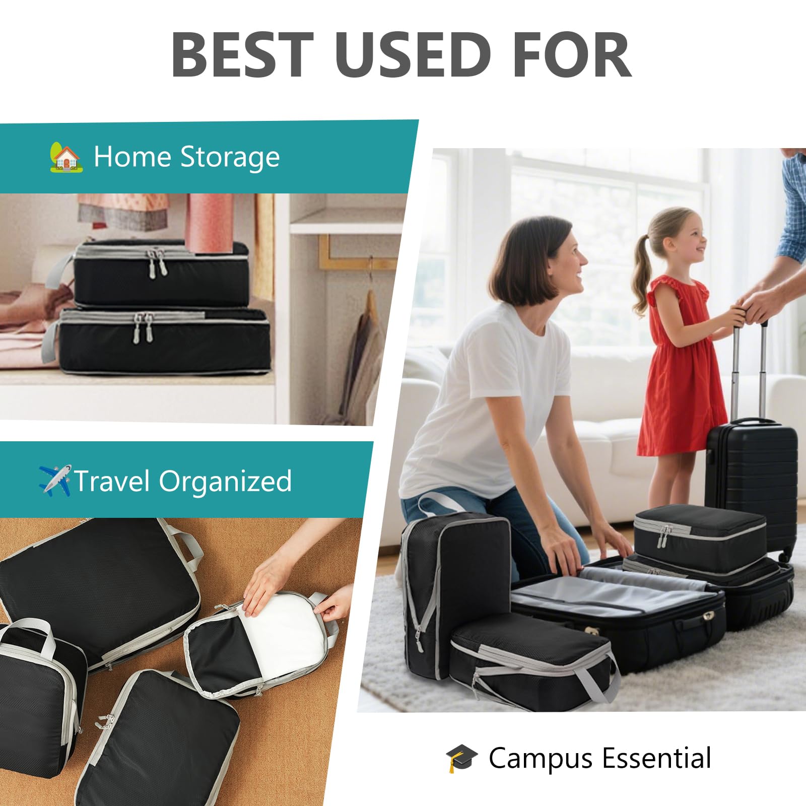 - 【Versatile Use for Travel, College, Gym & Storage】: Perfect for flights, dorms, gym gear, and business trips—these Packing Cubes for Travel keep all your essentials organized. The versatile Compression Packing Cubes work as compact Suitcase Organizer Bags for any scenario