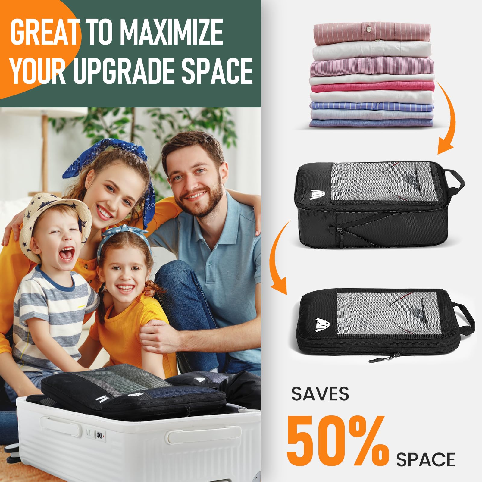 - Perfect for Every Trip: 5-Year Quality Promise for Peace of Mind. Our compression packing cubes add no extra weight and fit easily into any suitcase, carry-on, or backpack. Whether for family vacations, business trips, weekend getaways, or cruises, this kit keeps essentials organized. The large cubes are travel essentials for flying and also double as home storage for bulky clothes. A must-have for families, kids, and adventurers. One set covers all your packing needs and makes a great gift.