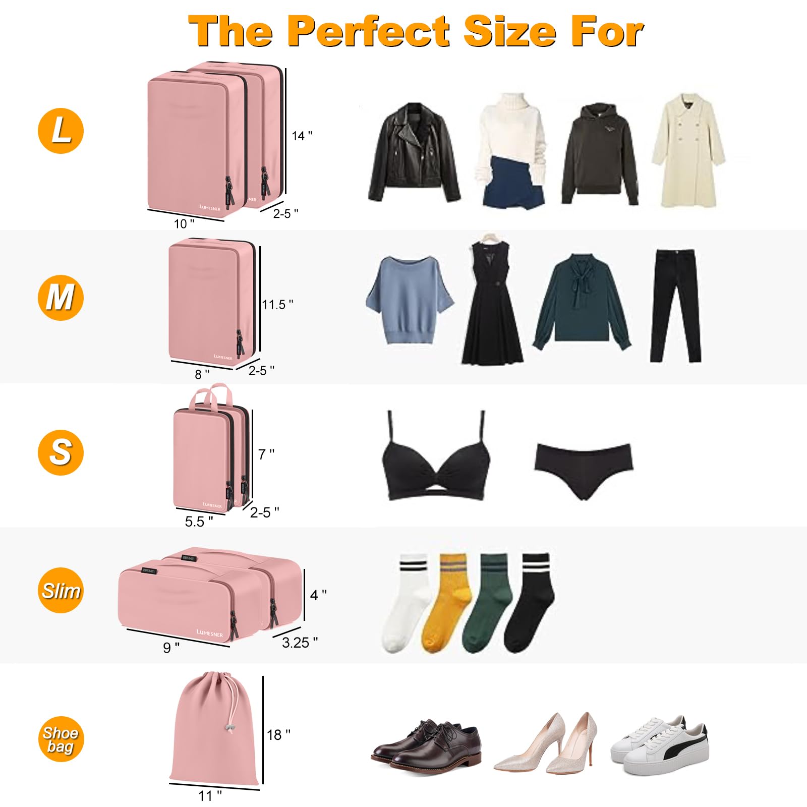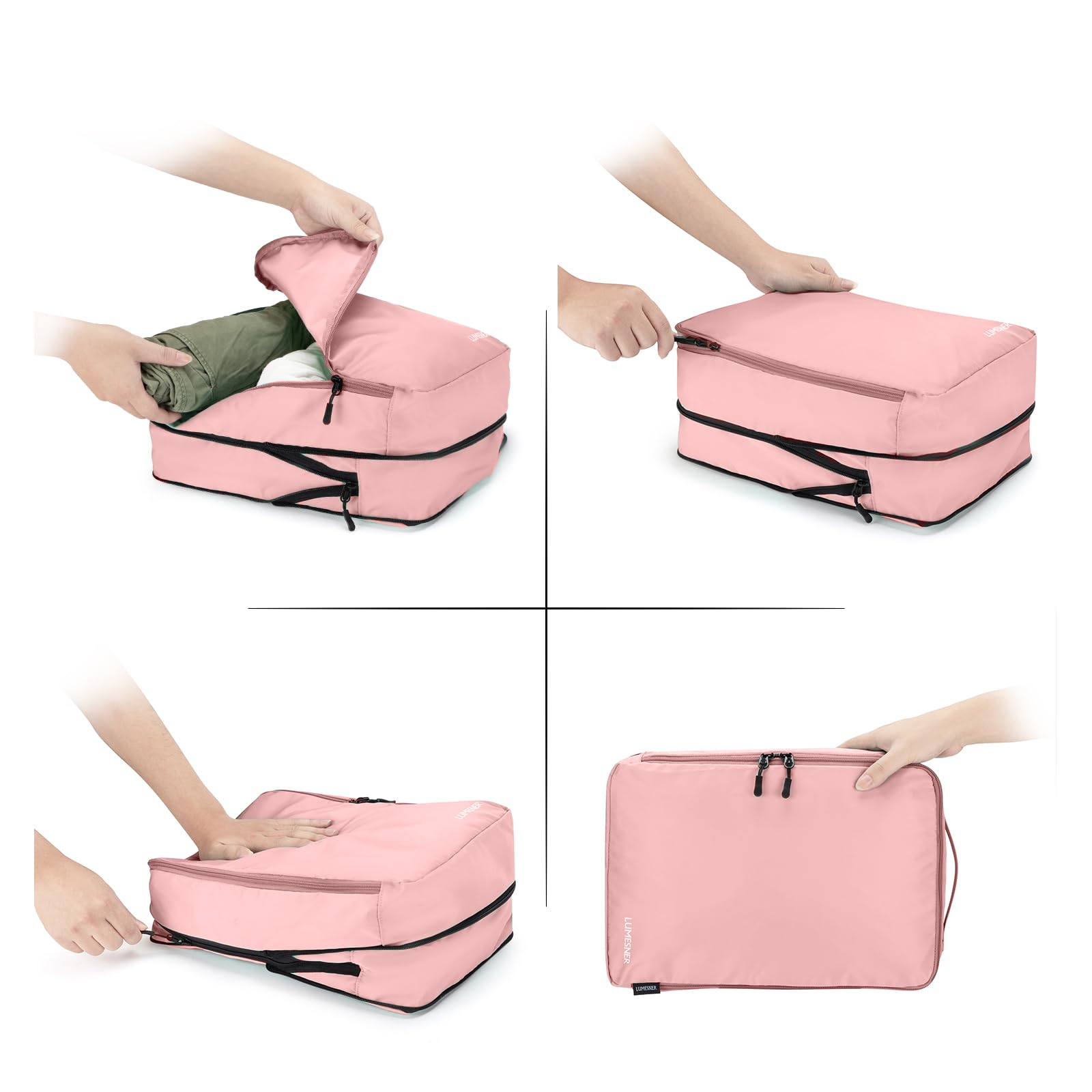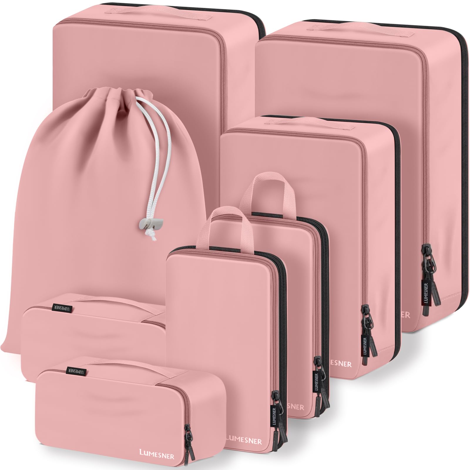 Compression Packing Cubes, Lumesner 8 Set Travel Packing Cubes for Carry on Suitcases, Compression Suitcase Organizers Bag Set & Travel Cubes (8-piece, Pink)