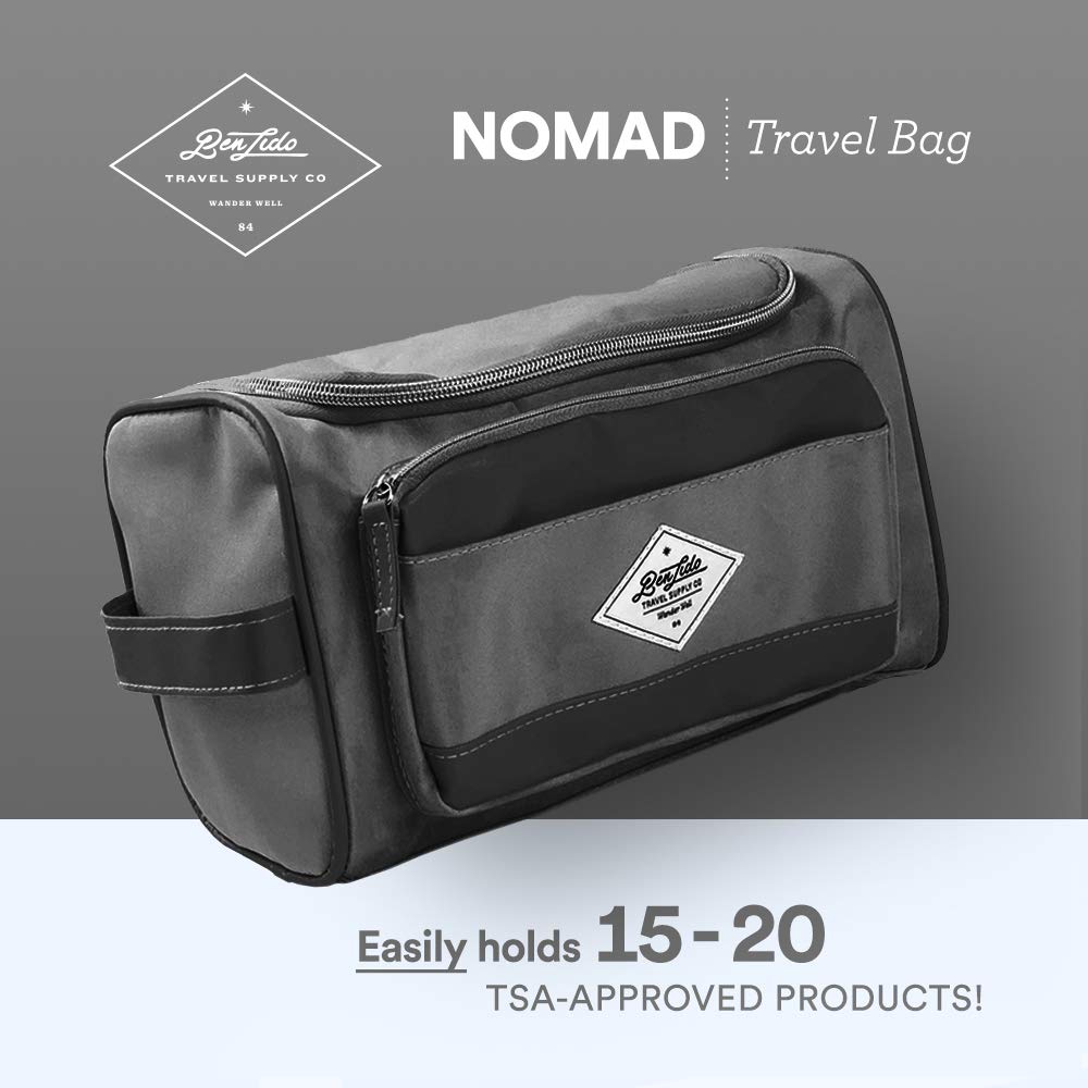 Details: 15 Piece kit contains: Face and Body: Barbasol Twin Blade Disposable Razor, Fresh Scent Shave Cream (package may vary), Head & Shoulders Shampoo 3 oz., Palm Scalp Brush, Old Spice Swagger Body Wash 3 oz., Old Spice A/P Deodorant .5 oz., Oral care: Crest Toothpaste .85 oz., Colgate Toothbrush, Dentek ADA Accepted Flossers 3 ct., Other: 4-Dude Wipes 1 ct., TSA compliant quart sized Zip top bag, in Black rectangular Nomad travel zippered bag with handle.