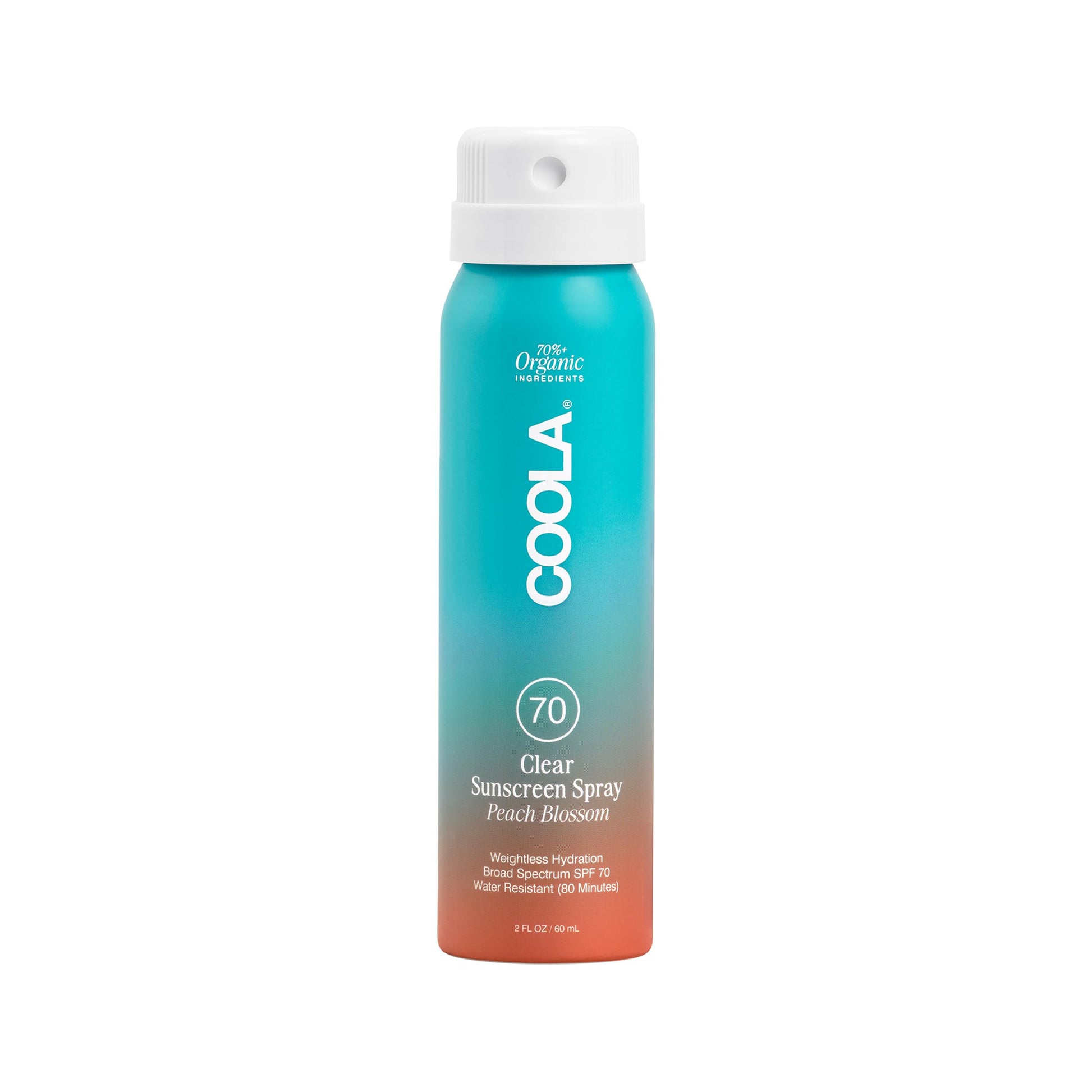 COOLA Organic Sunscreen SPF 70 Sunblock Spray, Dermatologist Tested Skin Care for Daily Protection, Vegan and Gluten Free, Peach Blossom, 2 Fl Oz