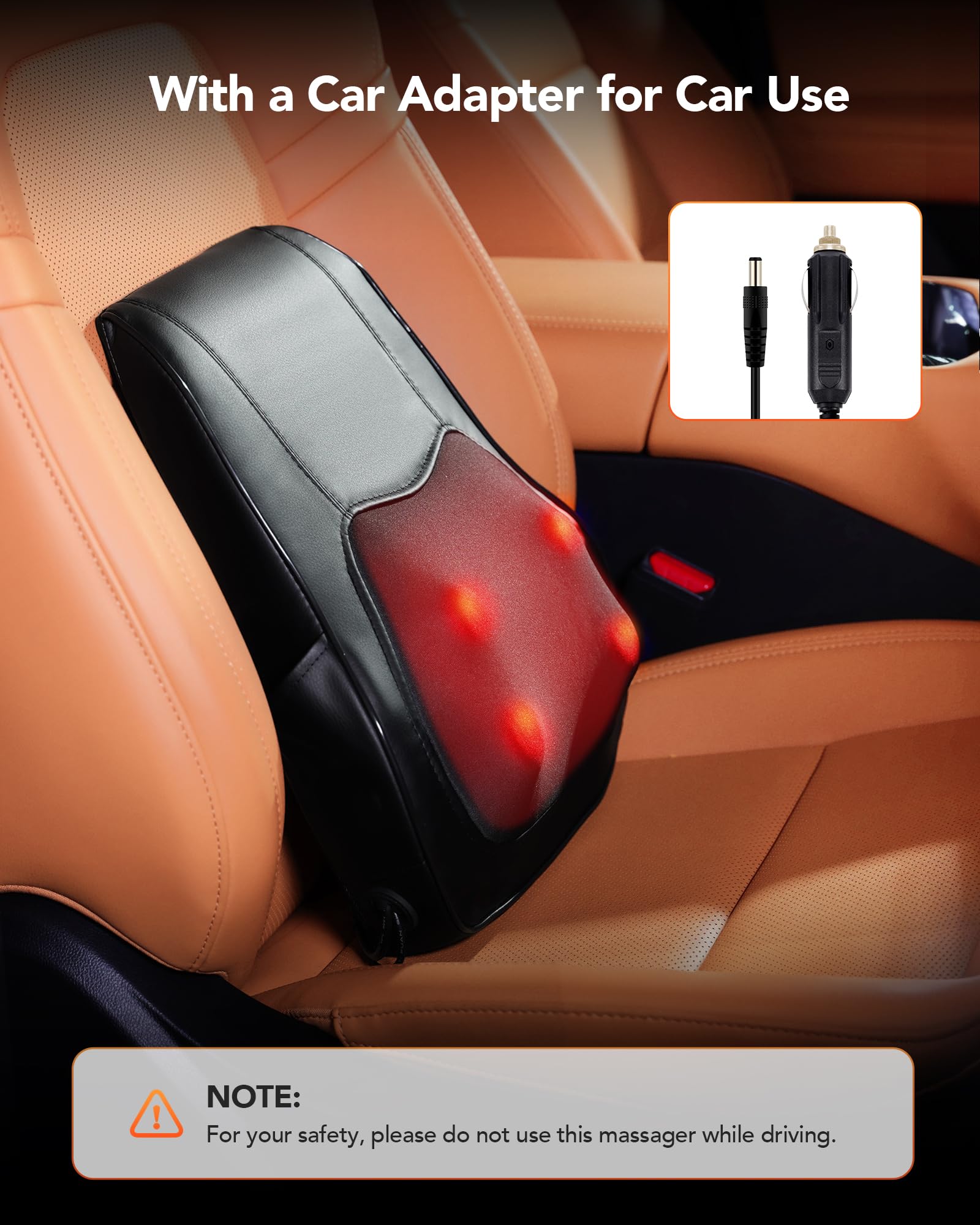 - Dual Power Adapters for Anywhere Use: Our back massager has an AC adapter (for home/office) and a car adapter (perfect for road trips). Never miss a massage session, whether at your desk or on the go.