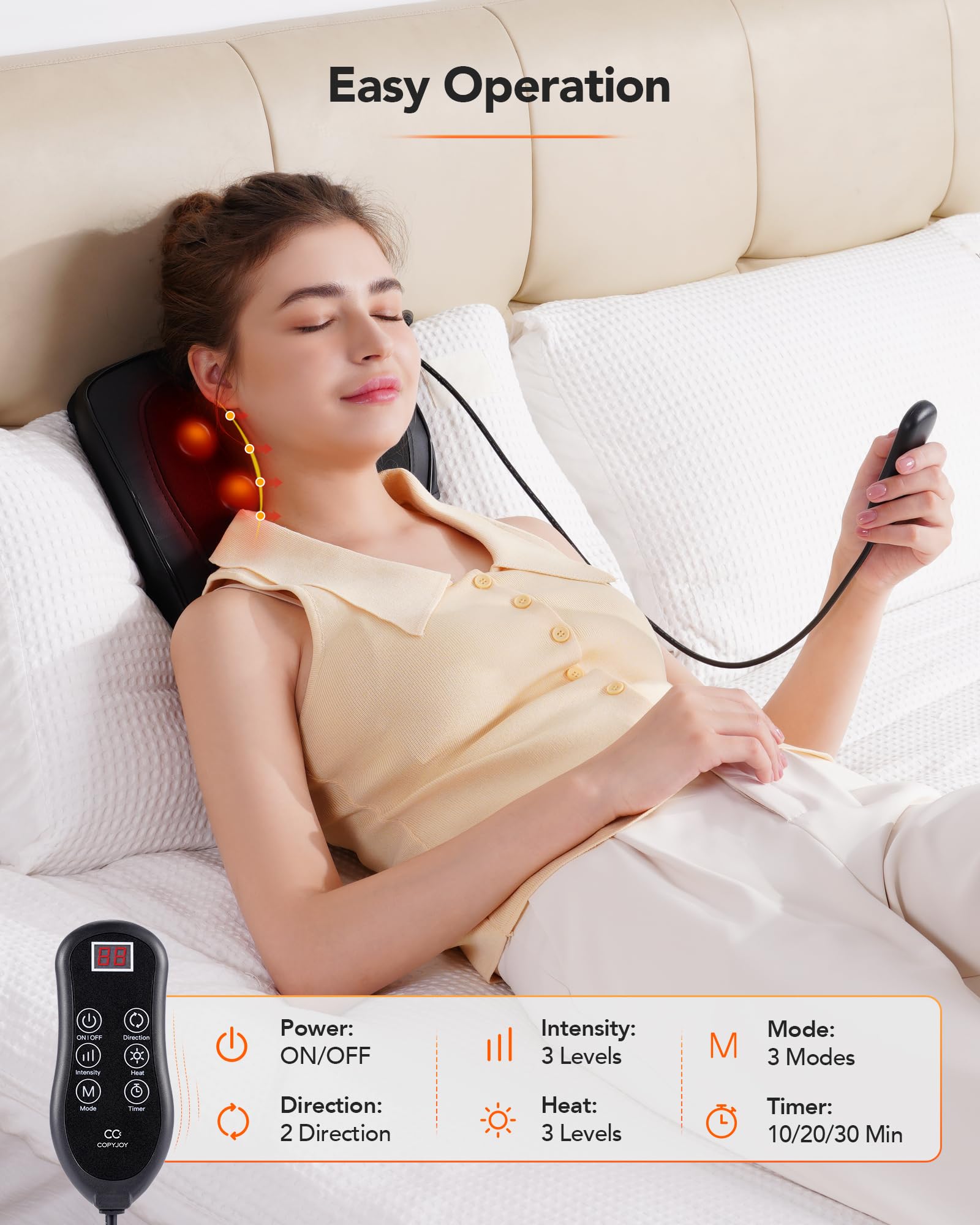 - Easy to Operate: Our neck massager comes with a remote control, which is more convenient to use. Large, clear buttons make it senior-friendly.
