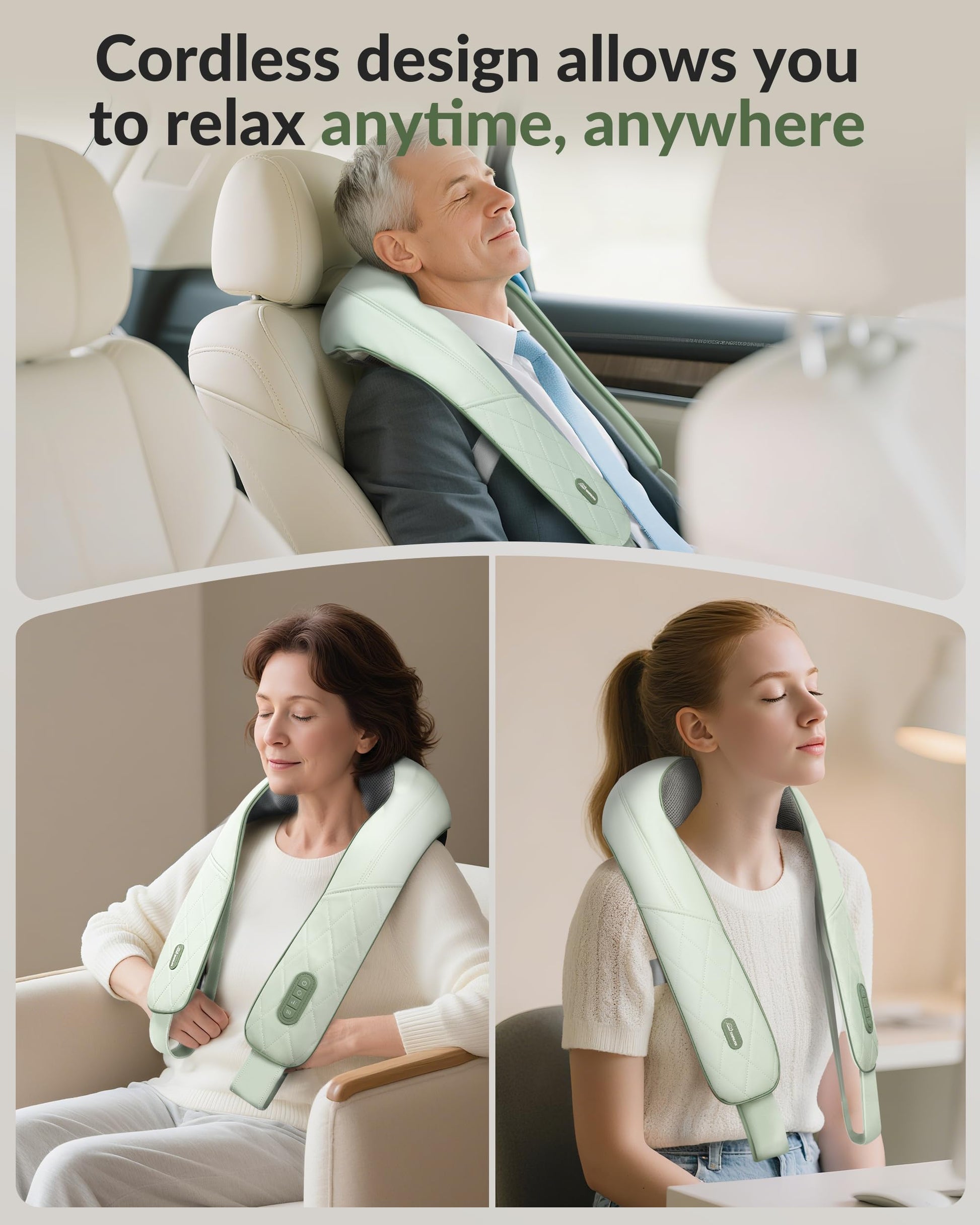 - Rechargeable & Portable : Snailax Cordless neck massager features a built-in 2500mAh battery, providing up to 60 minutes of wireless use on a full charge. Convenient to carry, you can enjoy a relaxing massage anytime, anywhere.