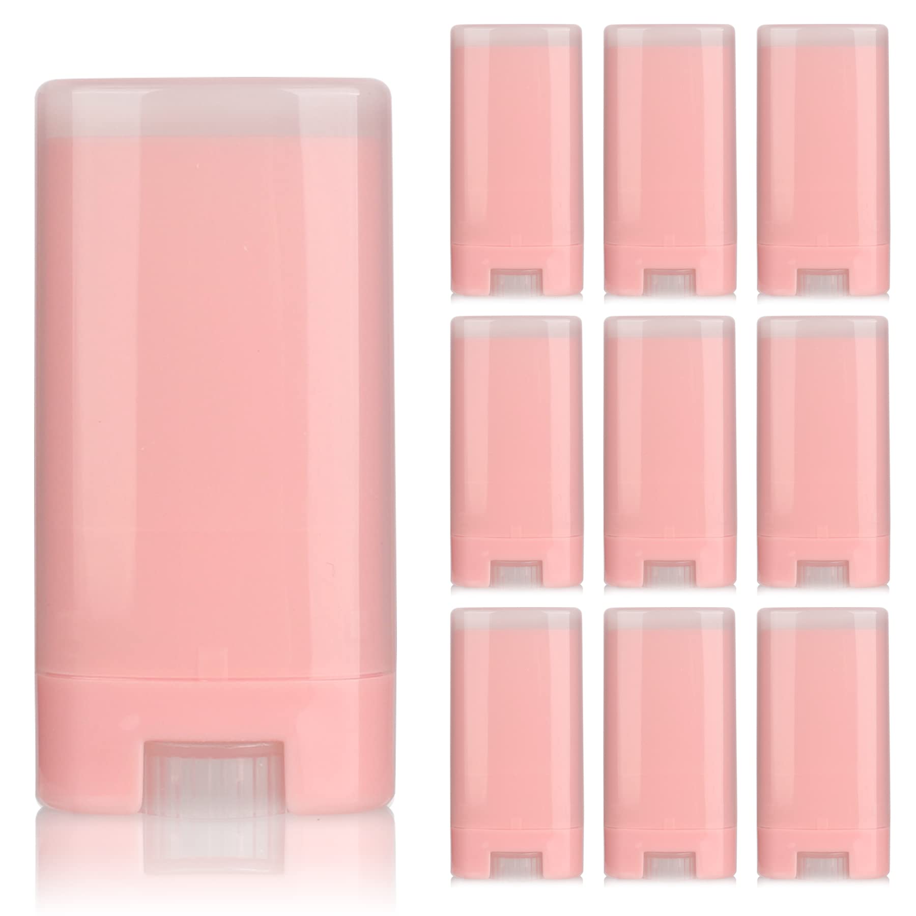 COSIDEA 25 PCS plastic empty 15g / 0.5 oz travel size Pink oval shaped lip balm tube mini deodorant containers 15ml lipstick tube Twist up hair wax container