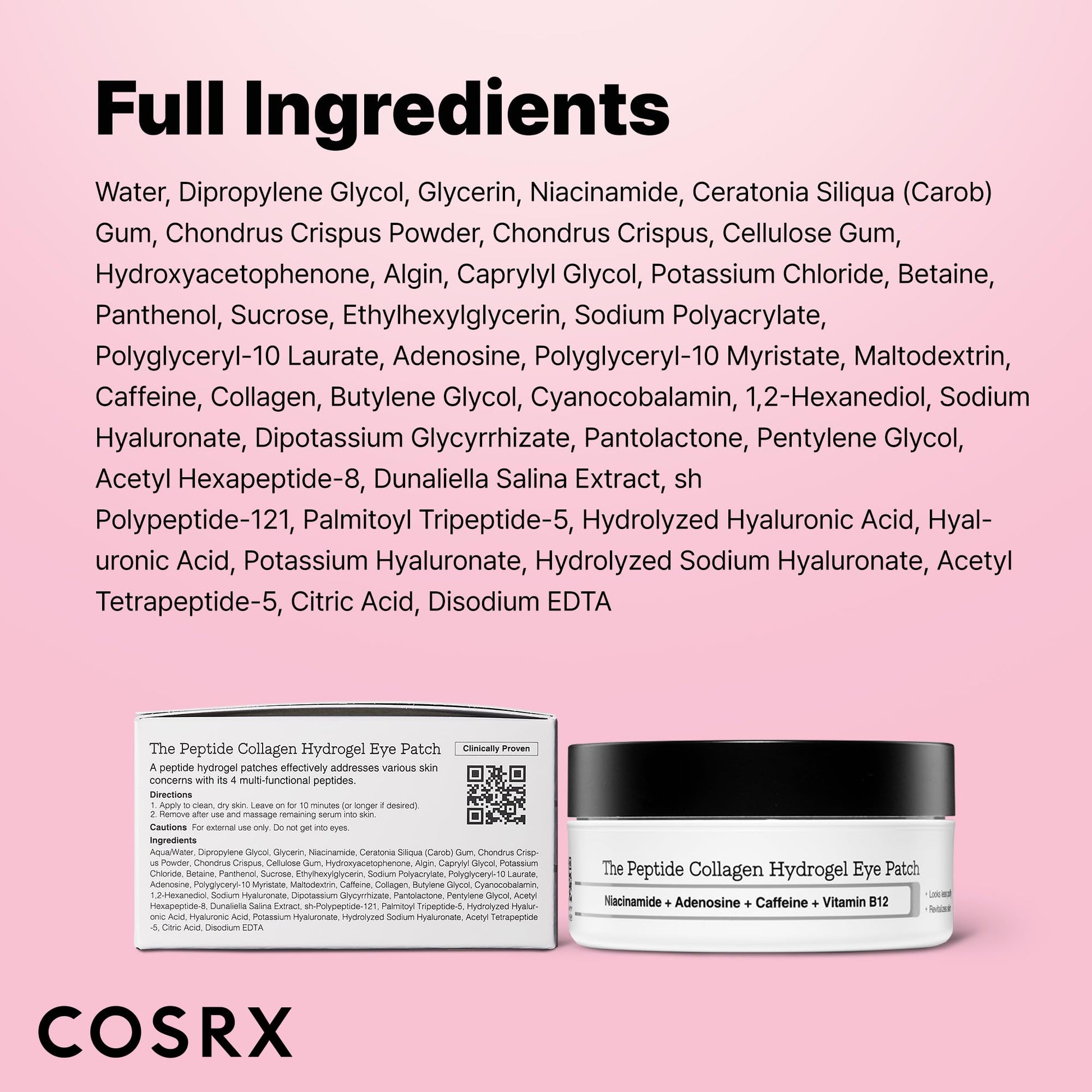 COSRX Pink Peptides Collagen Hydrogel Eye Patch for Puffy Eyes and Dark Circles, Under Eye Mask, 60 Under Eye Patches, Korean Skin Care