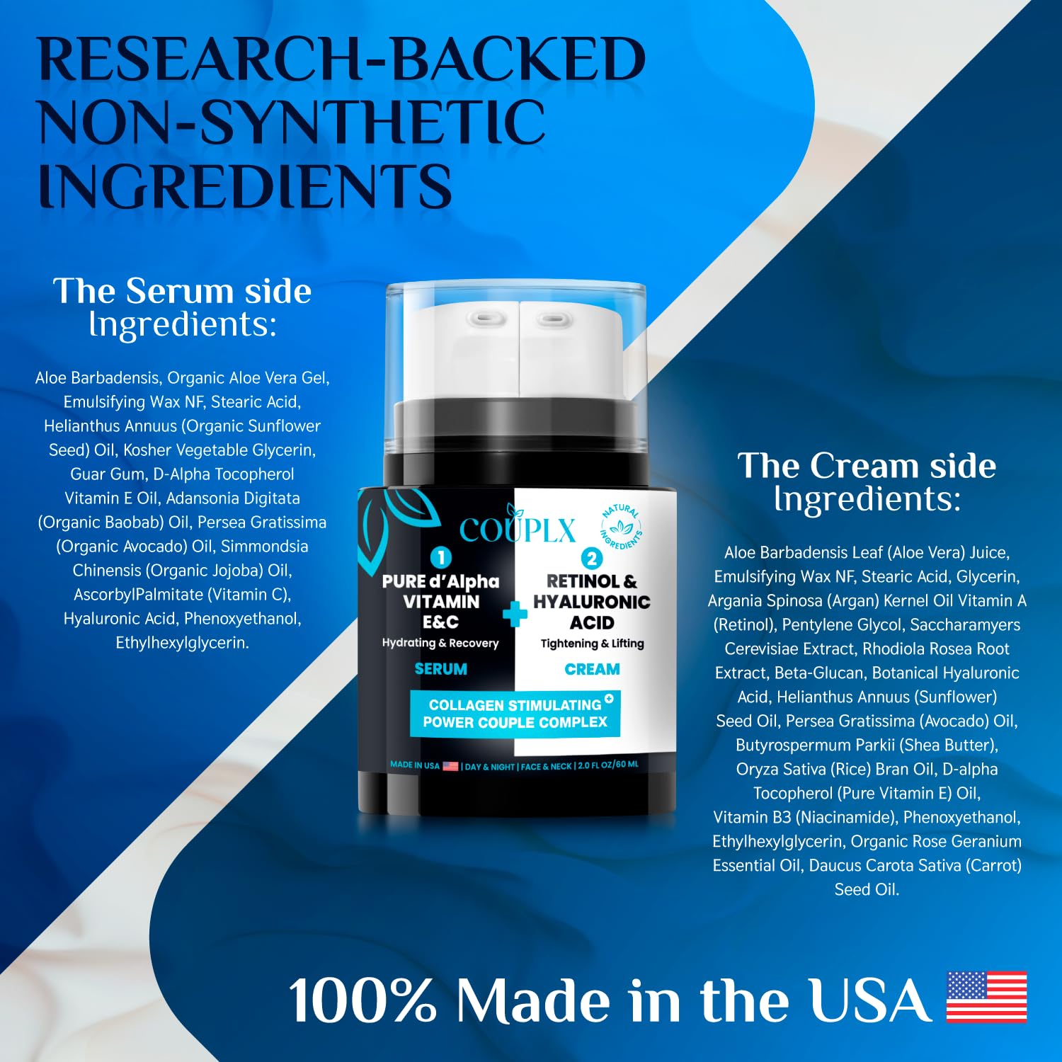 COUPLX 2-in-1 Neck Firming Cream & Face Moisturizer for Women, Anti-Aging Retinol Cream with Vitamin E & C Serum, Skin Tightening Face Lotion for Neck & Face, 2 fl oz