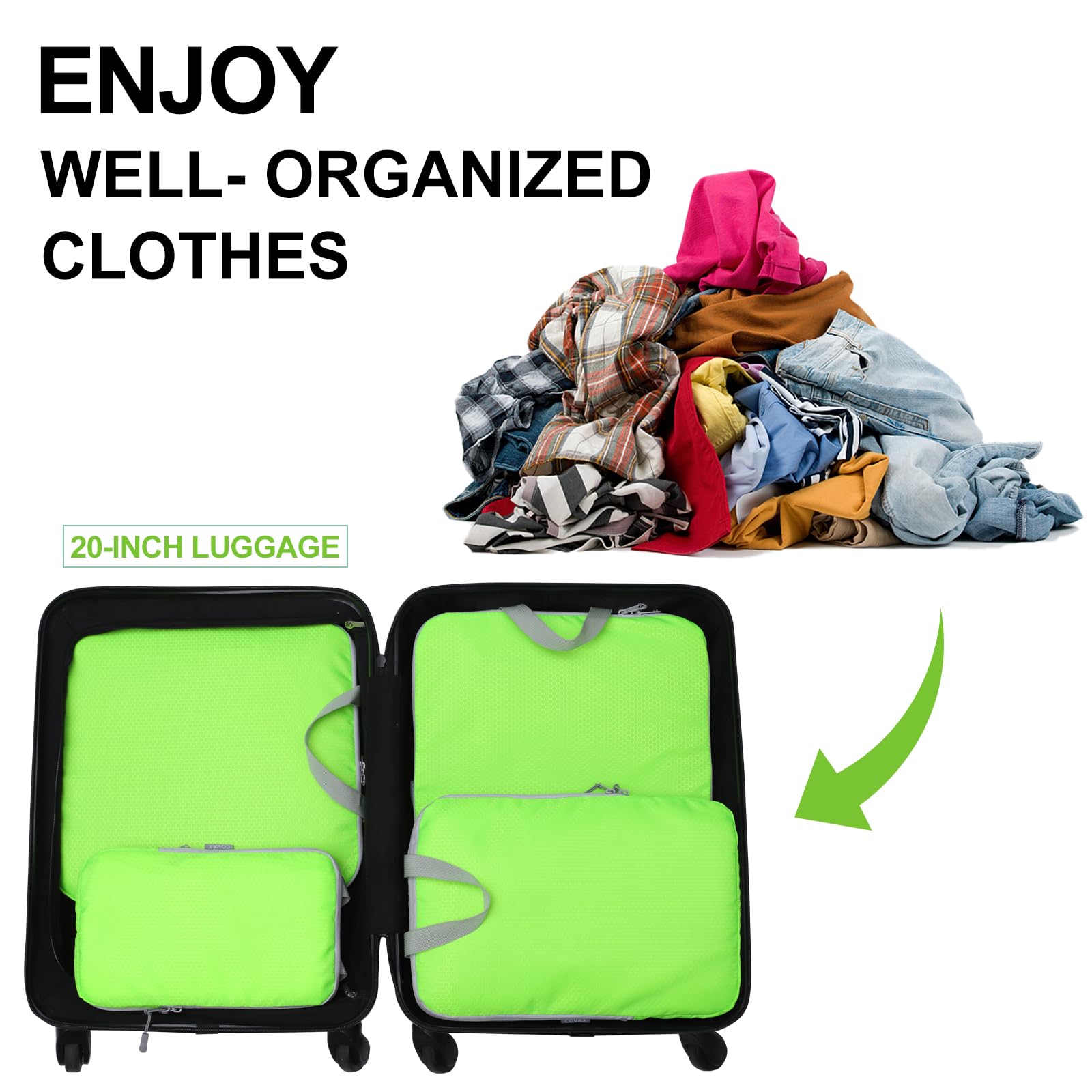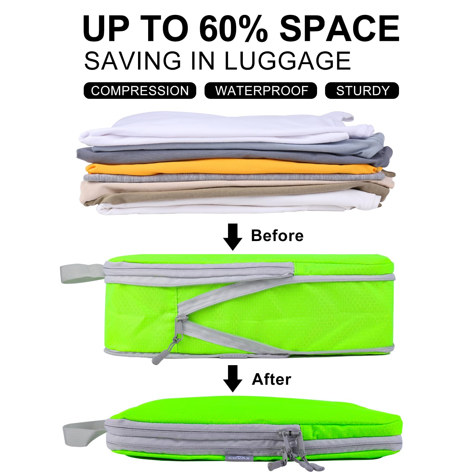 COVAX 4 Set Compression Packing Cubes, Travel Luggage Organizers and Storage Packing Cubes, Fluorescent Green