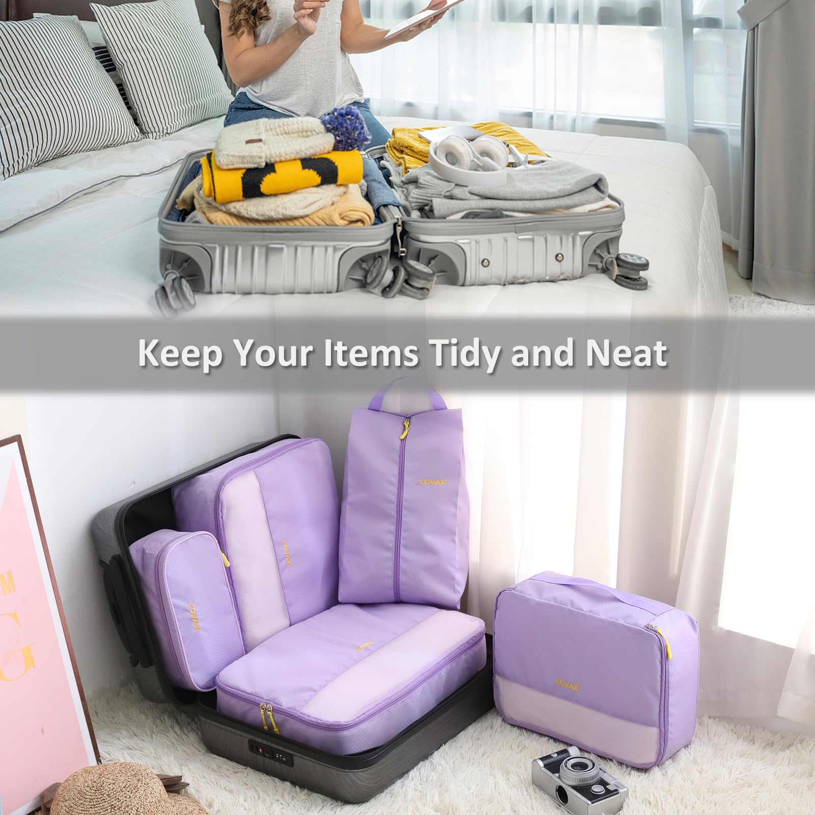 COVAX Packing Cubes for Suitcases, 5 Set Travel Luggage Organizer Bags and Storage Packing Cubes for Women Men, Purple
