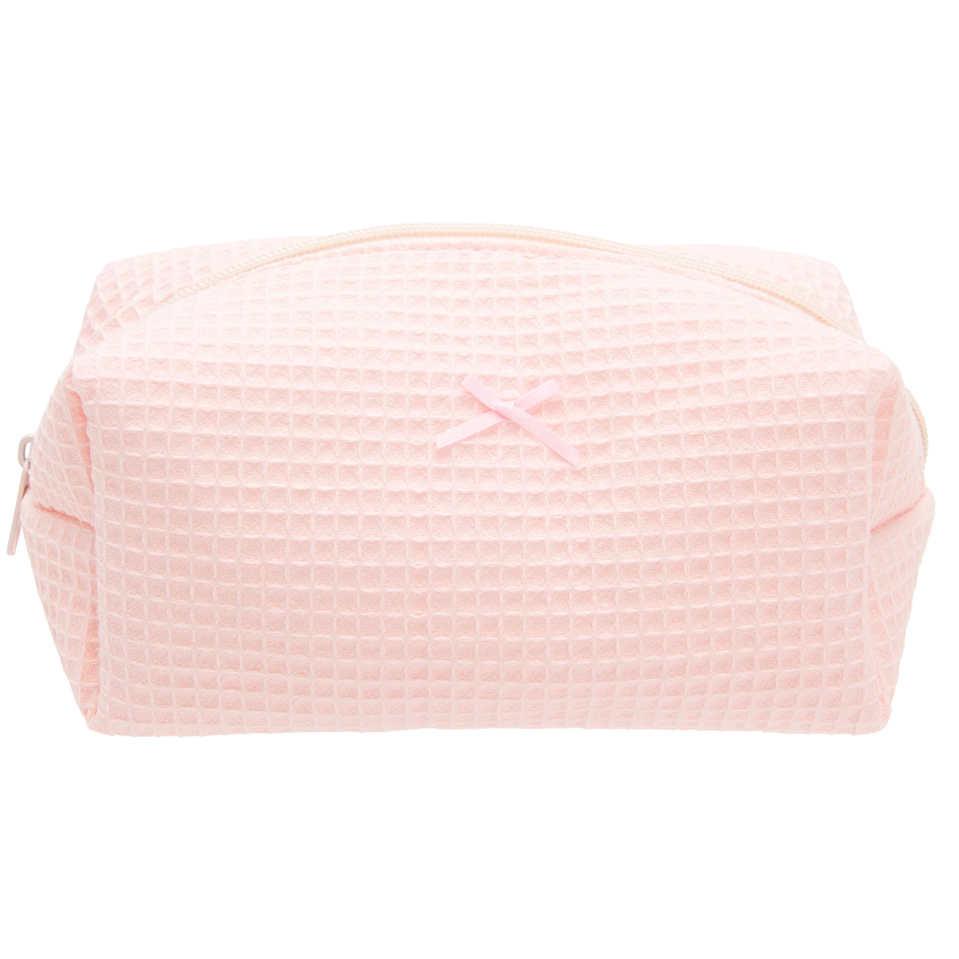 Cozy Makeup Bag Travel Cosmetic Bag for Women Soft Toiletry Bag Aesthetic Makeup Organizer Portable Large Zipper Pouch for Skincare Beauty Accessories Brushes Waffle Check Light Pink