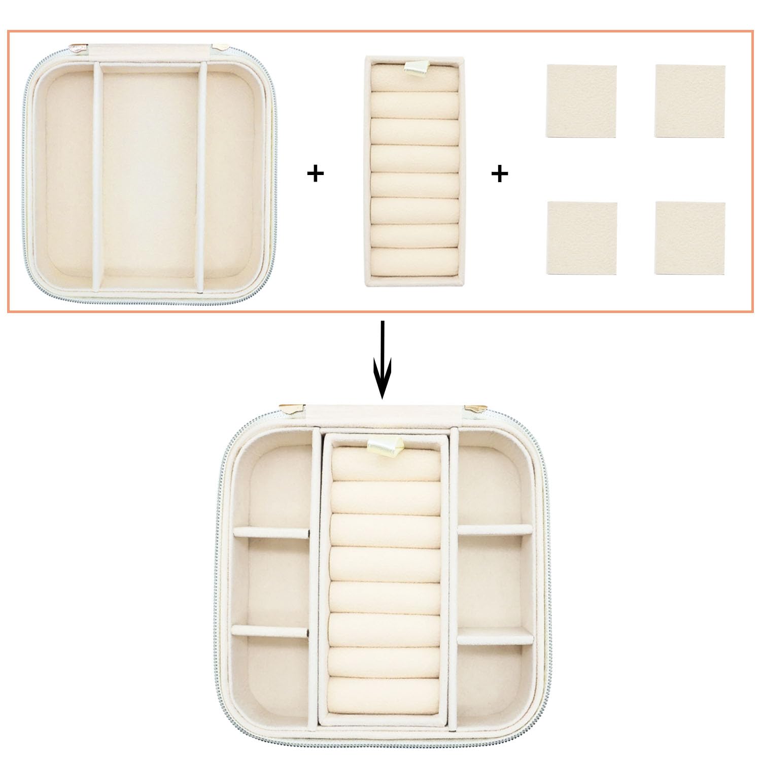 - Removable Ring Tray: The travel jewelry case has ample and flexible storage space, and the 6-grid partitions can also be moved to meet the storage needs of different jewelry, such as rings, earrings, lipsticks, hairpins, bracelets, accessories, etc.