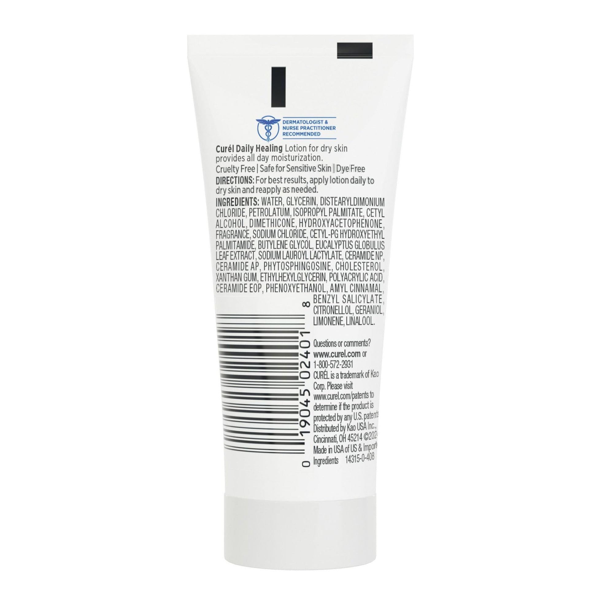 Details: Relieve dry skin and keep it hydrated all day long with Curél Daily Healing Body Lotion for Dry Skin. While traditional body lotions hydrate only on the skin's surface, Curél Daily Healing Lotion works within the skin to repair its moisture barrier. With Advanced Ceramide Complex, the lotion replenishes ceramides that help the skin retain moisture and prevent dry skin from returning. The time-released hydration is clinically proven to provide 24 hours of continuous moisturization. Dermatologist recommended, Curél Daily Healing Lotion absorbs quickly so it never feels greasy or heavy. Skin is left smooth, comforted, and intensely satisfied..