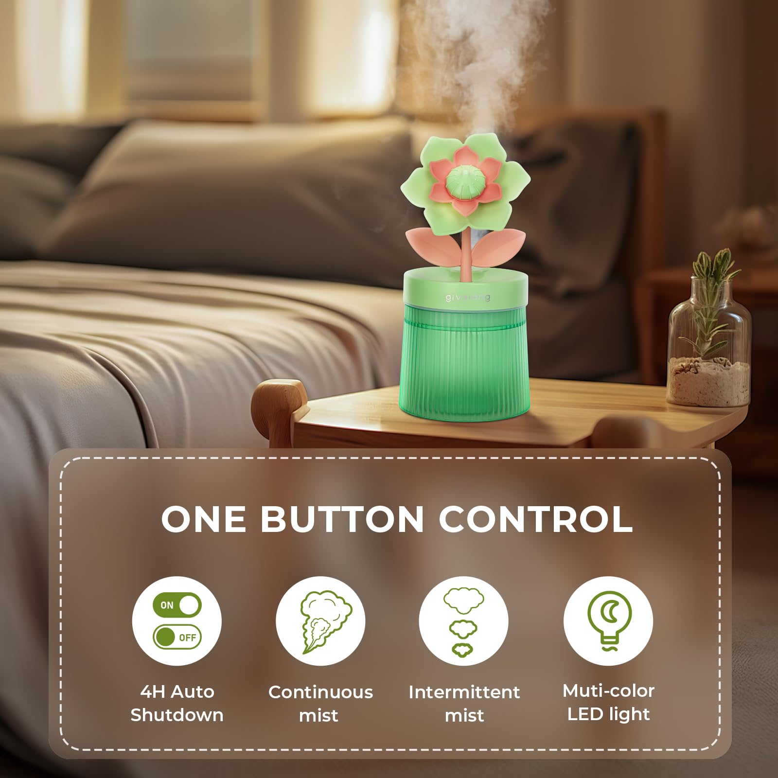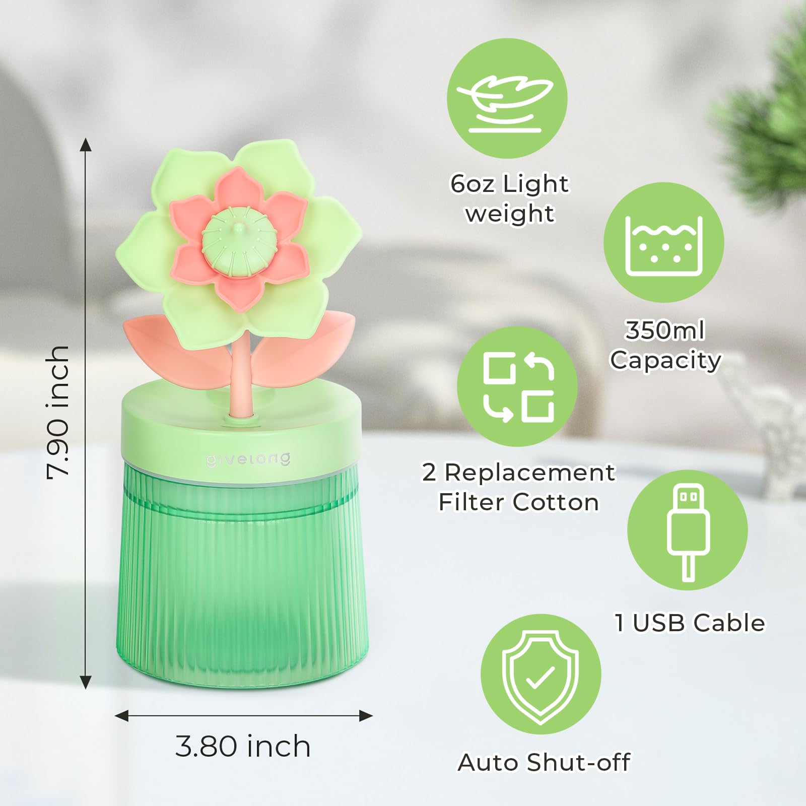 Cute Flower Mini Humidifier, 260ml Gardenia Desktop Humidifiers for Bedroom, Portable Small Cool Mist Humidification for Home, Baby Nursery, Office & Indoor Plants, USB Powered (Green)