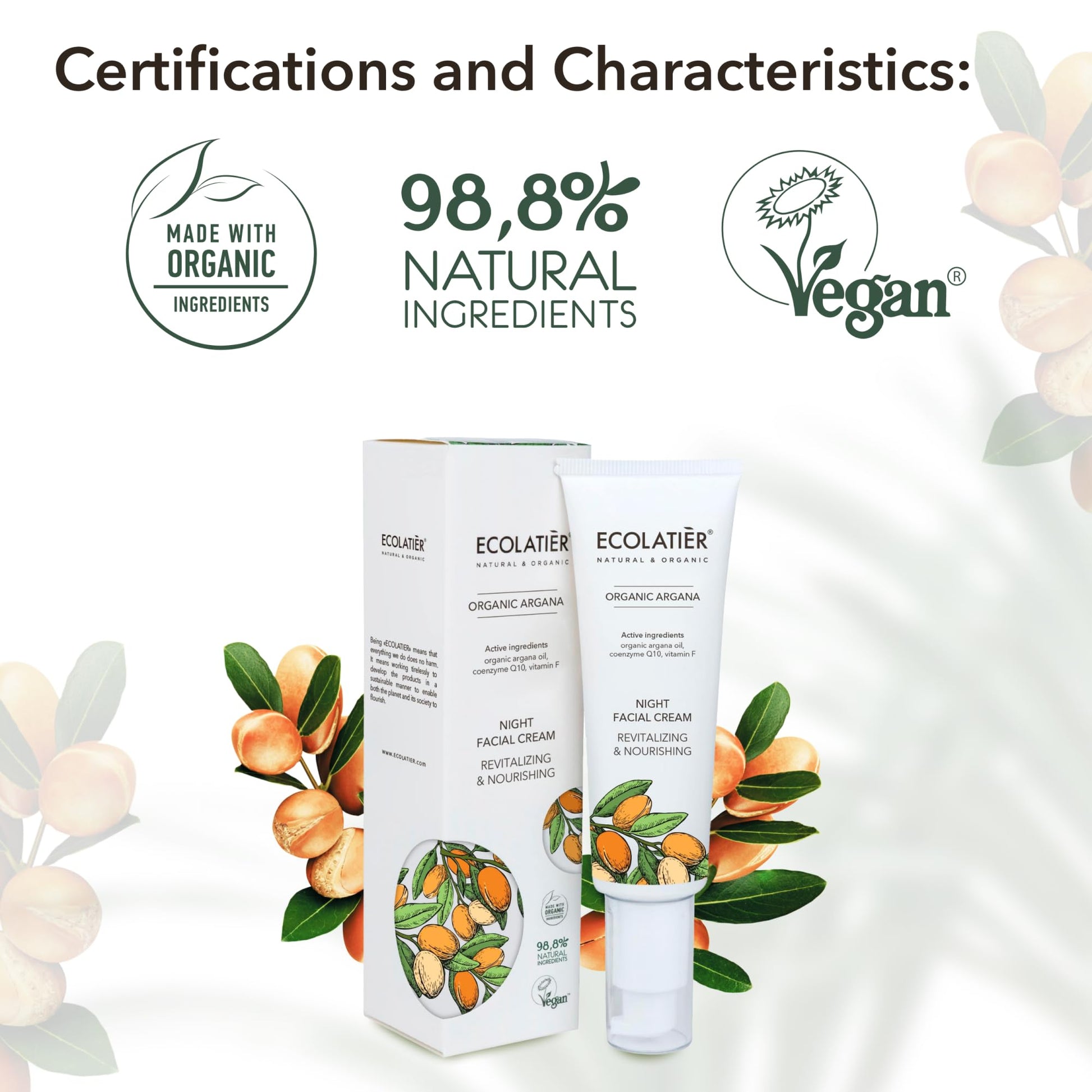Daily Face Cream with Organic Argan Oil – Revitalizing & Nourishing, Moisturizer with Hyaluronic Acid & Vitamin E, Vegan, 97.2% Natural Ingredients, 1.7 Fl Oz - ECOLATIER