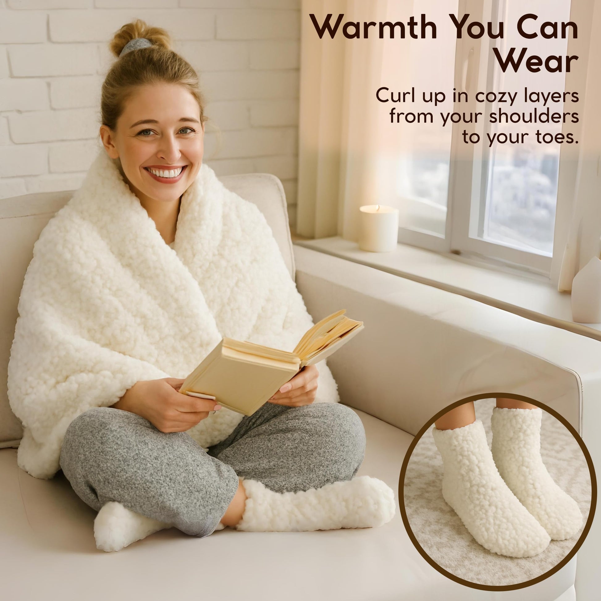 - WRAP YOURSELF IN WARMTH : Experience unparalleled coziness with our luxurious products. Send a virtual hug with our 100% Polyester Fuzzy Blanket (39x59 inches). Indulge your feet with our plush socks, made of 60% Polyester, 20% Cotton, and 20% Spandex. Enjoy beverages at the perfect temperature for hours with our 12 oz Stainless Steel Tumbler. Enhance your nightly routine or spa time with our Coral Fleece Pink Headband (20cmx5cm).
