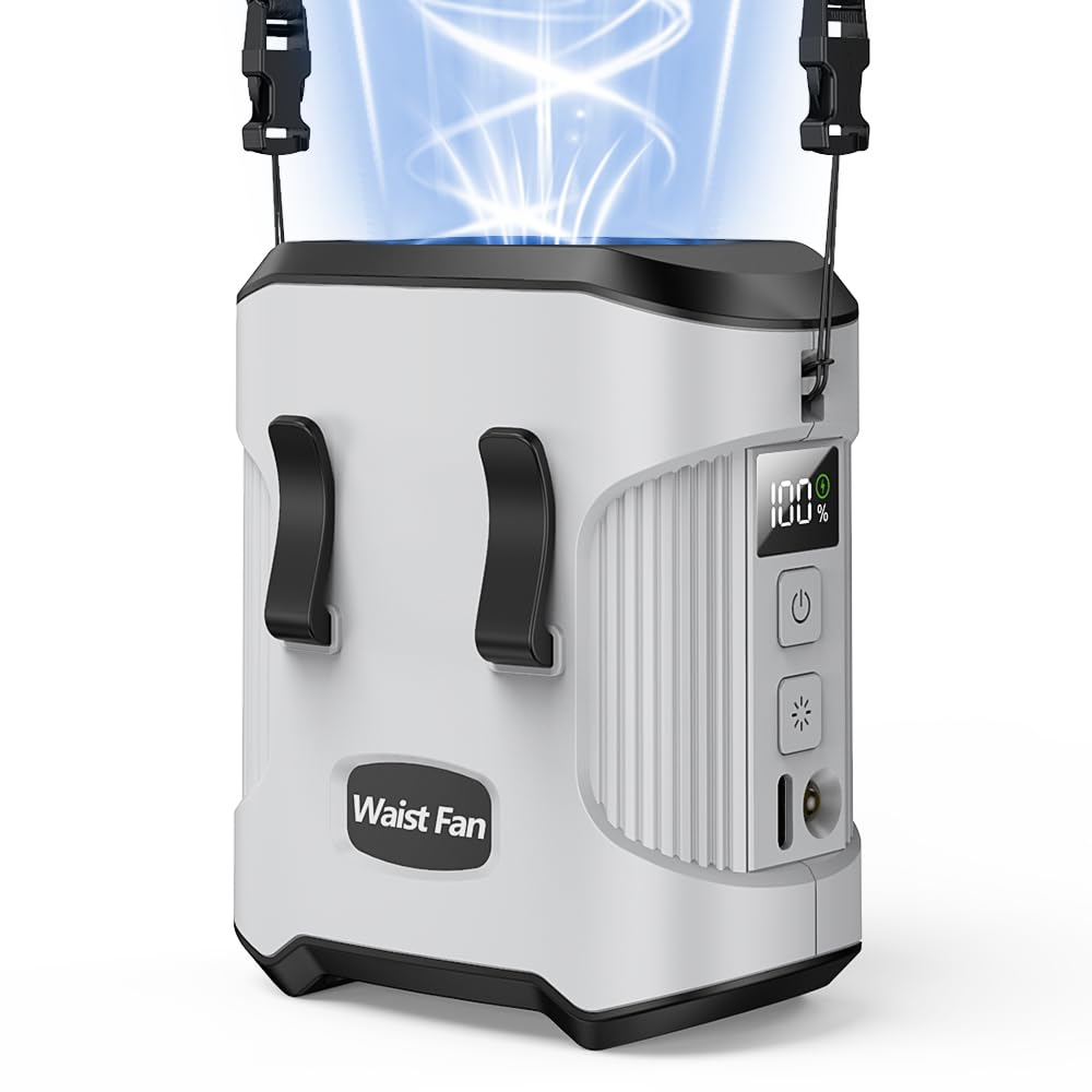 - 【Powerful Cooling Performance】Featuring a high-performance brushless motor and the latest direct-through airflow structure, this waist fan delivers strong, continuous airflow with a maximum speed of 16,000 RPM. With three adjustable wind speeds, it provides powerful and efficient cooling, ensuring you stay comfortable even on the hottest days.