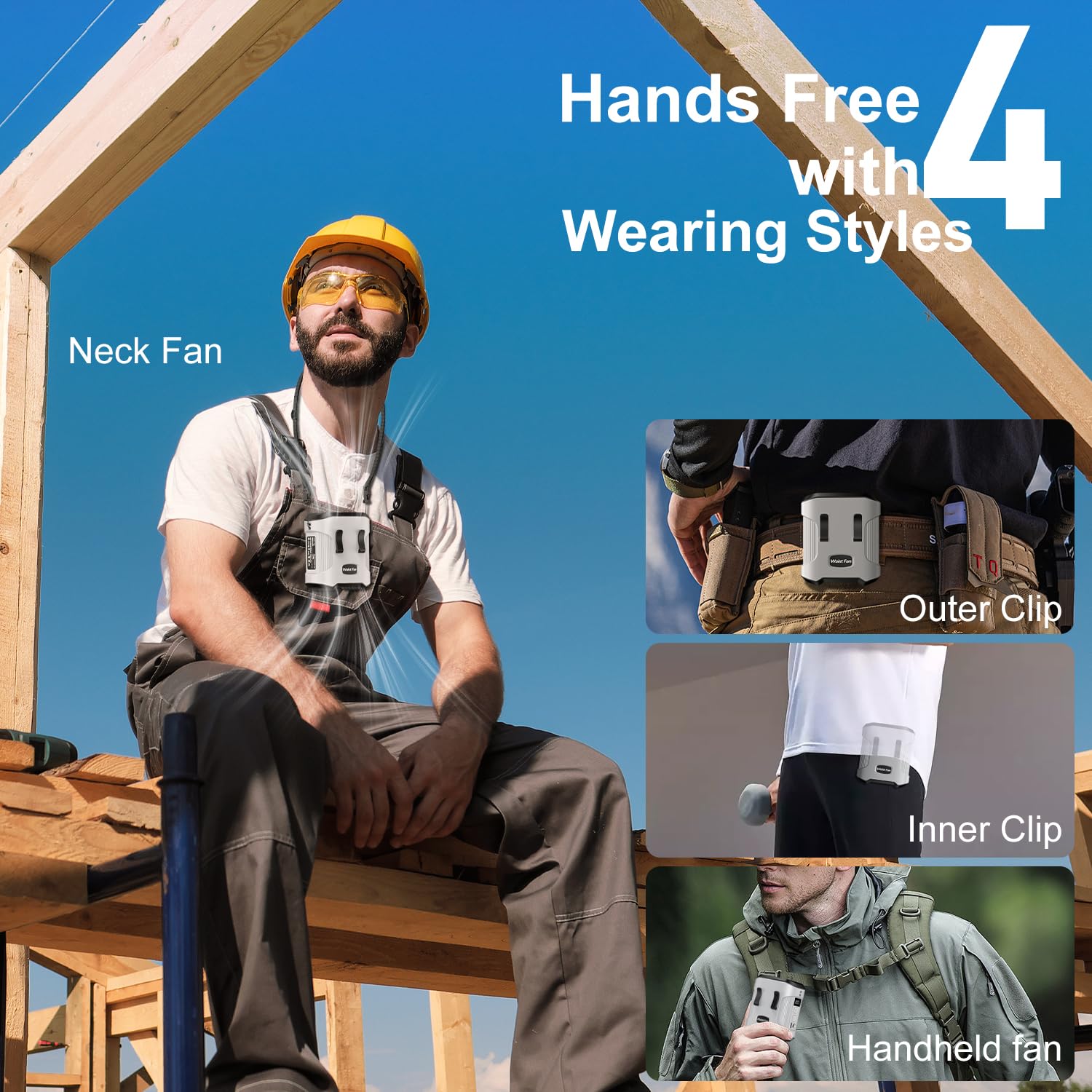 - 【Durable and Outdoor-Ready】Made from high-quality, drop-resistant polymer plastic, this wearable fan is perfect for hiking, camping, sports, and outdoor work. Its wearable design keeps you comfortable while staying active. Whether you’re on a construction site, biking, or relaxing outdoors, this fan ensures you stay cool and refreshed all day long. Ideal for both work and leisure.