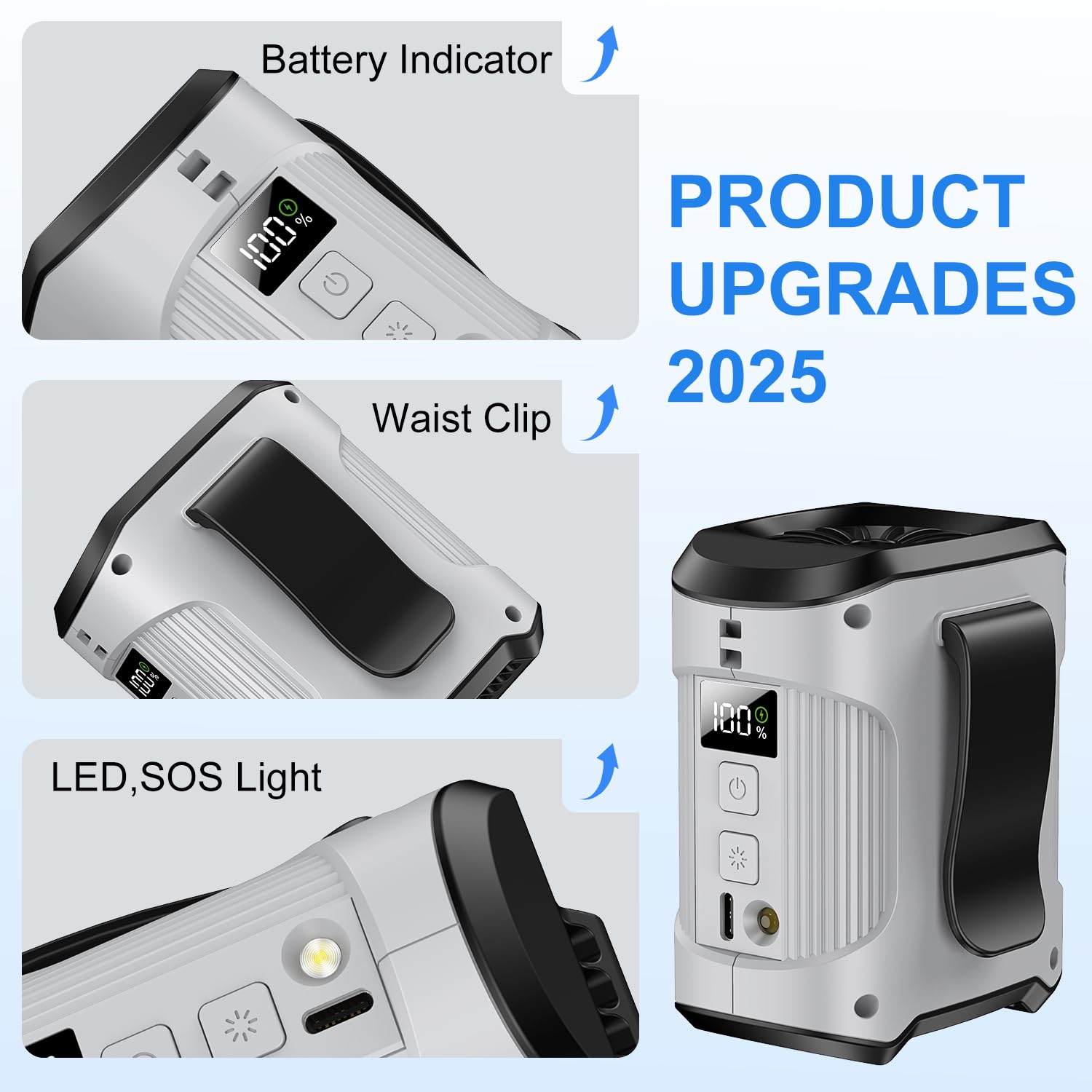 - 【Multifunctional and Convenient Design】This personal fan fan can be used as a waist fan, neck fan, handheld fan, or even a desktop fan, offering flexibility for any situation. It features a convenient lanyard for hands-free use and a clip for easy attachment to your waist or clothing. Additionally, it’s equipped with a super-bright LED light and an SOS flashlight, making it perfect for nighttime walks and outdoor adventures.