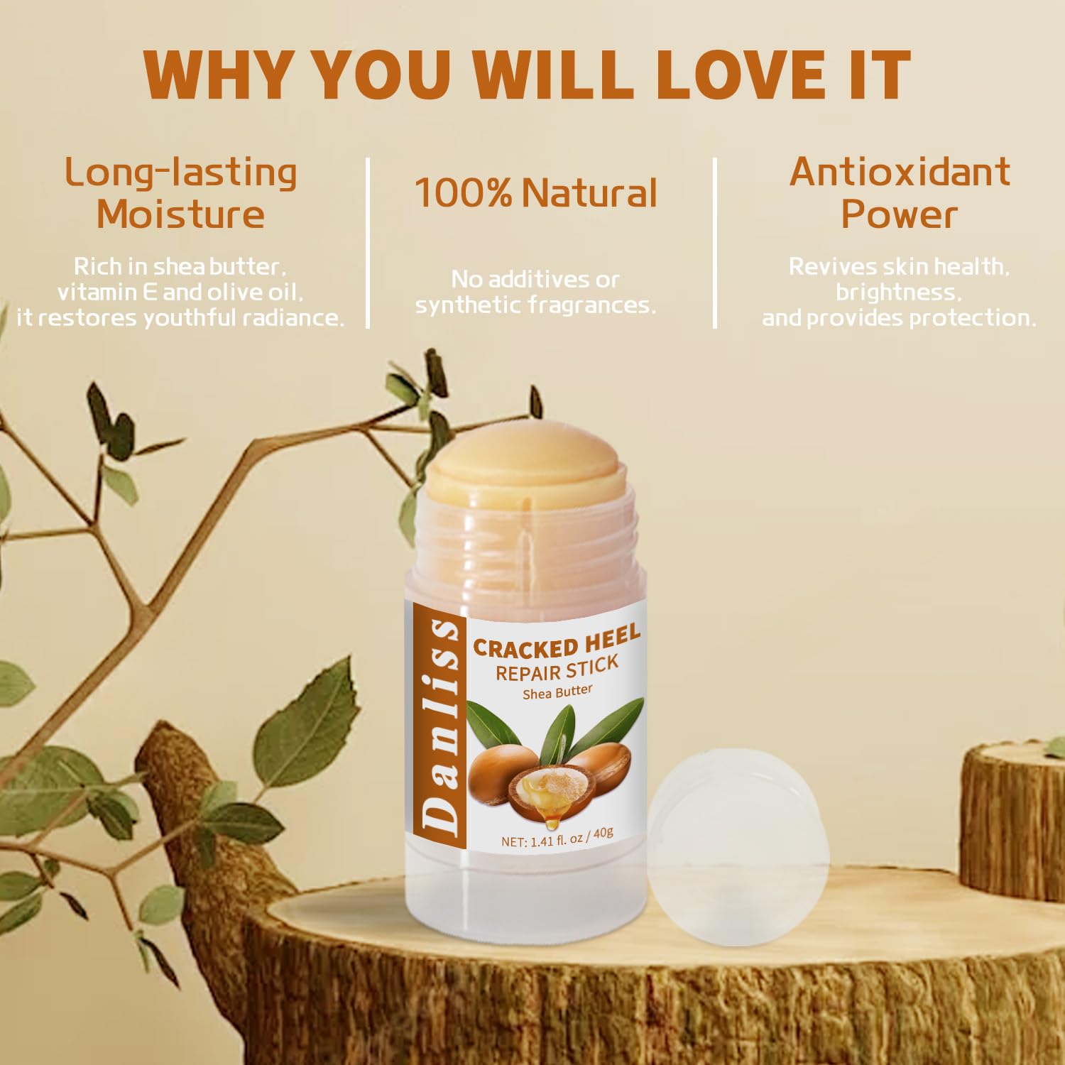 Danliss Heel Moisturizing Balm Stick Cracked Foot Nourishing Repair for Rough Dry Chapped Feet Hands Heels Nails Elbows with Shea Butter & Olive Vitamin E Natural Mild Moisturizer 1.41Oz (Shea Scent)