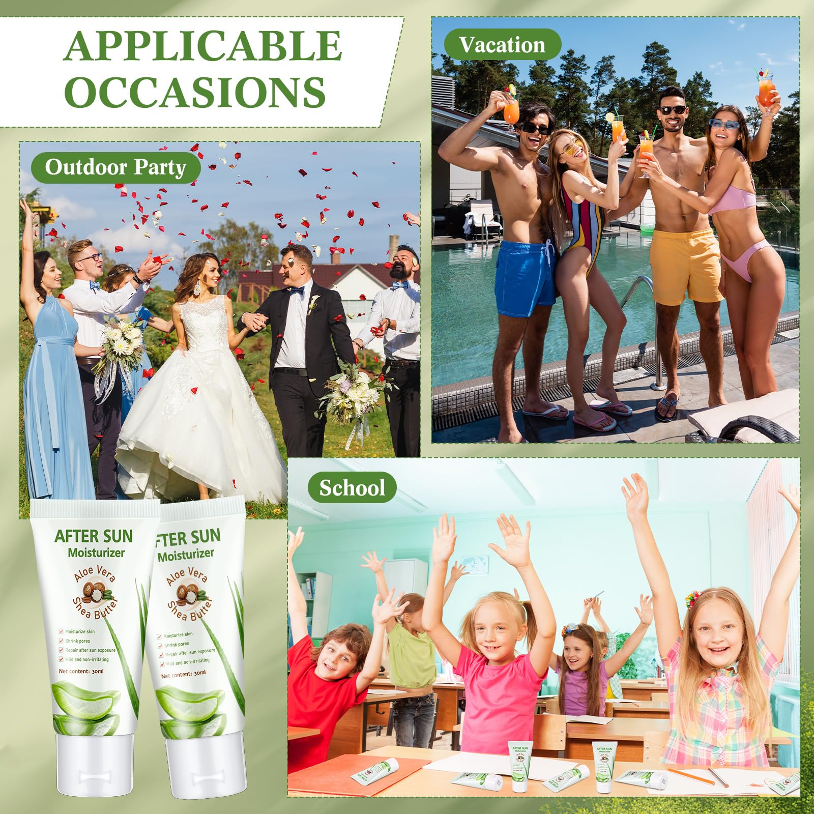 - Convenient Travel Size After Sun Lotion: enjoy ample supply of our after sun lotion, available in a pack of 12 mini after sun lotion; Each bottle is a travel friendly size of 3.94 X 1.81 inches or 10 X 4.6 cm and has a net weight of about 1 oz/ 30 g; Due to their lightweight and compact design, these lotions can easily fit in your bag, making them suitable for beach outings, picnics, weddings, baby showers or just daily indoor and outdoor use