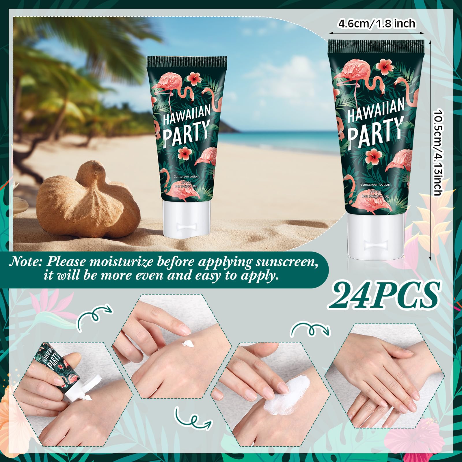 - Package Contents: you will receive 24 packs of Hawaiian party mini sunscreen, 1 oz travel size sunscreen lotion, sunscreen cream measures approximately 3.94 x 1.81 inches/ 10 x 4.6 cm, plenty of quantity, ideal for gifting choice
