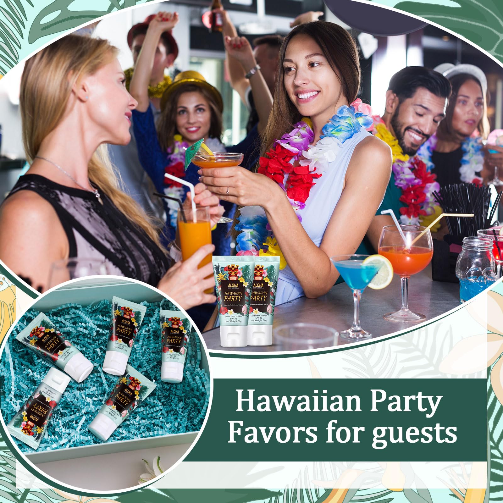 - Elegant Theme Design: our mini Hawaiian party sunscreen adopts Hawaiian leaves and flowers patterns, and is accompanied by [Thank You For Celebrating With Us] to create a feeling of happiness, giving the product a sense of sanctity and more in line with the theme of the Hawaiian party, Enhance the atmosphere of the party and more accurately express our gratitude to the guests