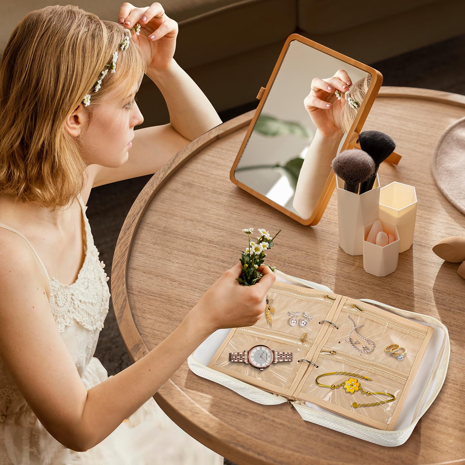 - [Modular Customization for On-the-Go] The binder-style design enables effortless jewelry arrangement by size or style. Adjustable pages can be added or removed to create a tailored storage system that combines practicality with aesthetic presentation.