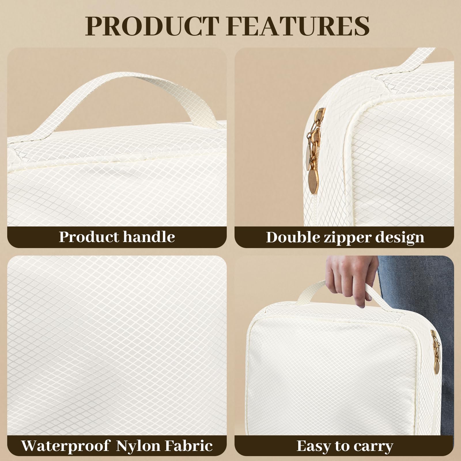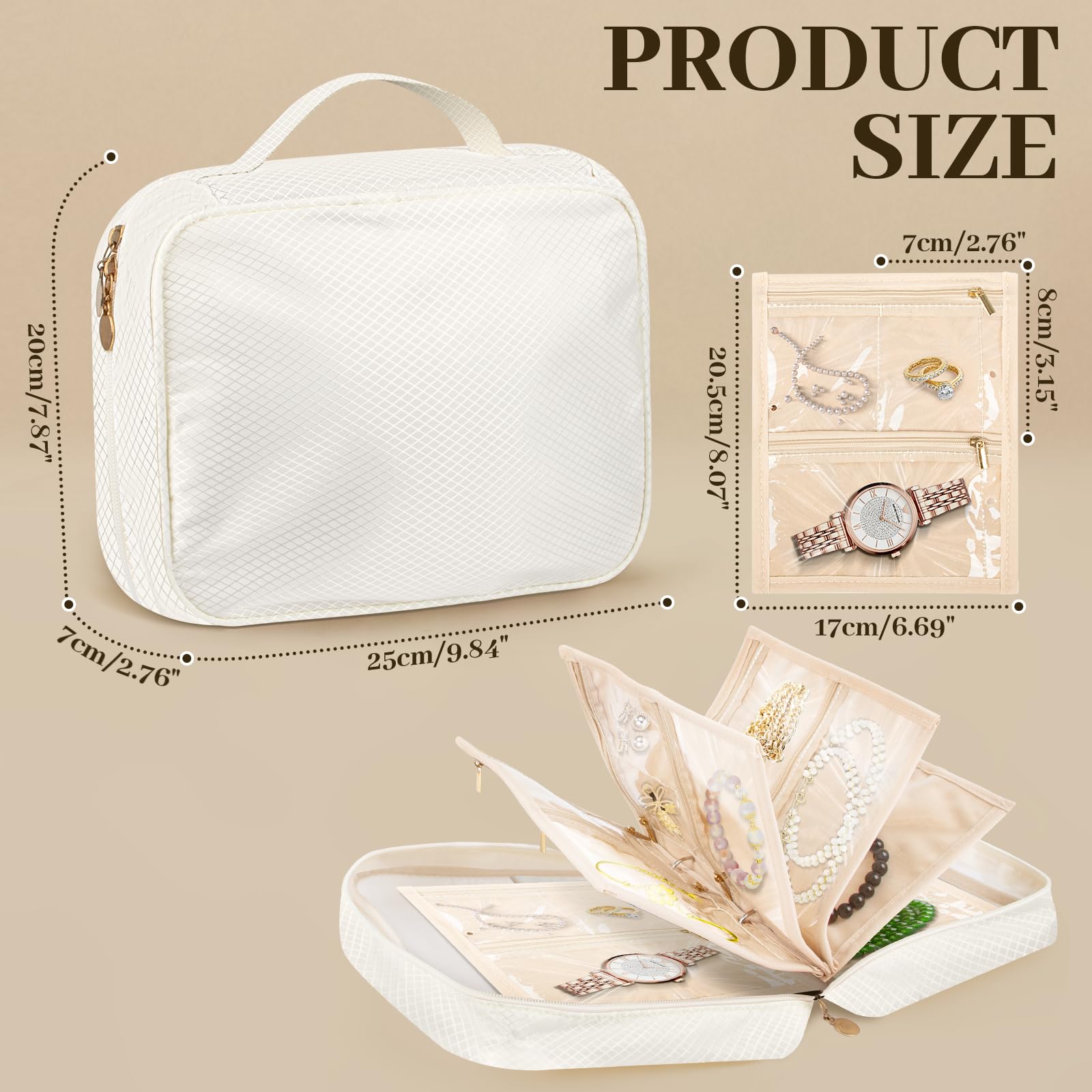 Dayacoco Travel Jewelry Organizer, Jewelry Storage Case Box with 6 Transparent Portable Clear Zipper Velvet Pouches for Earrings, Necklaces, Rings, Bracelets, Traveling, Gifts for Women (Beige)