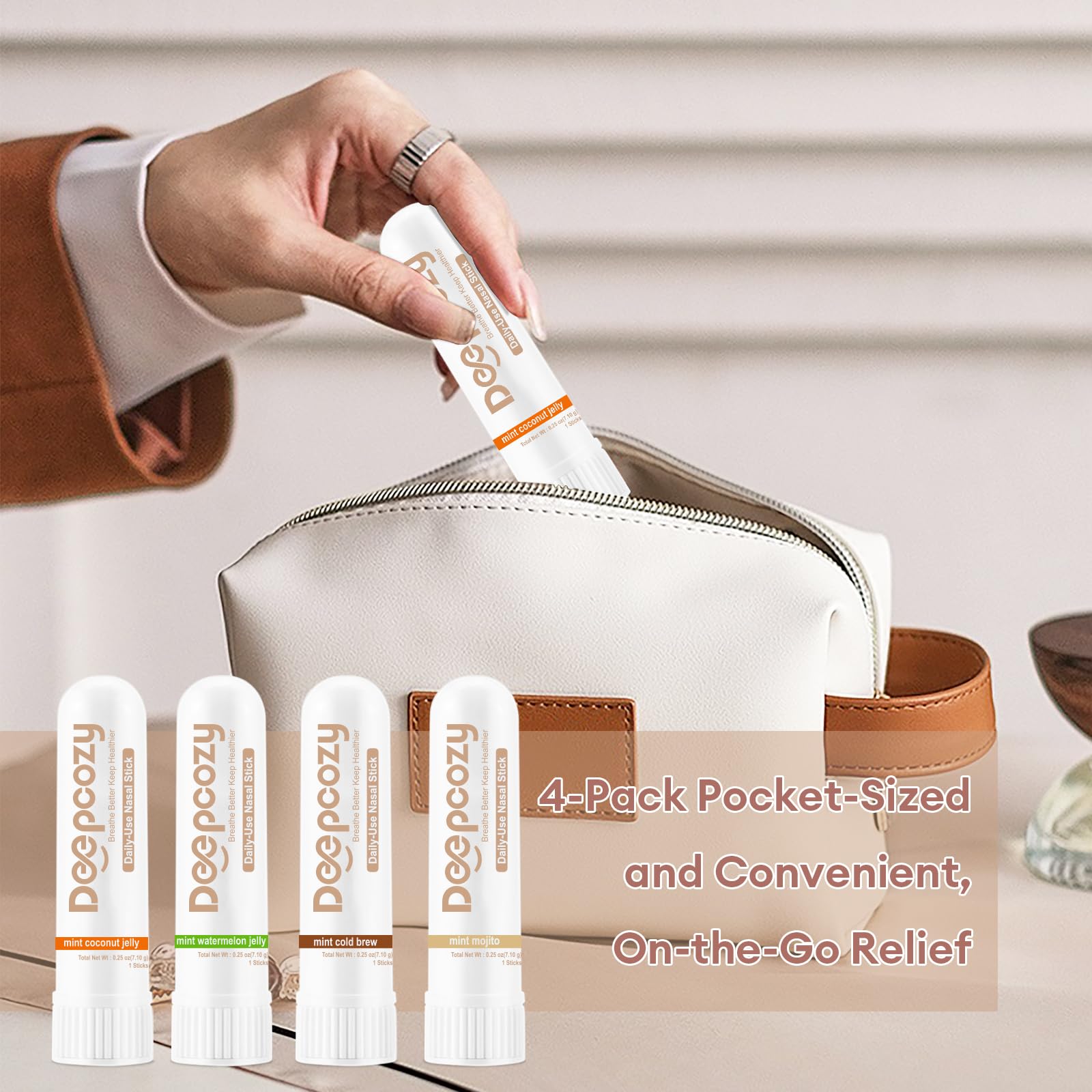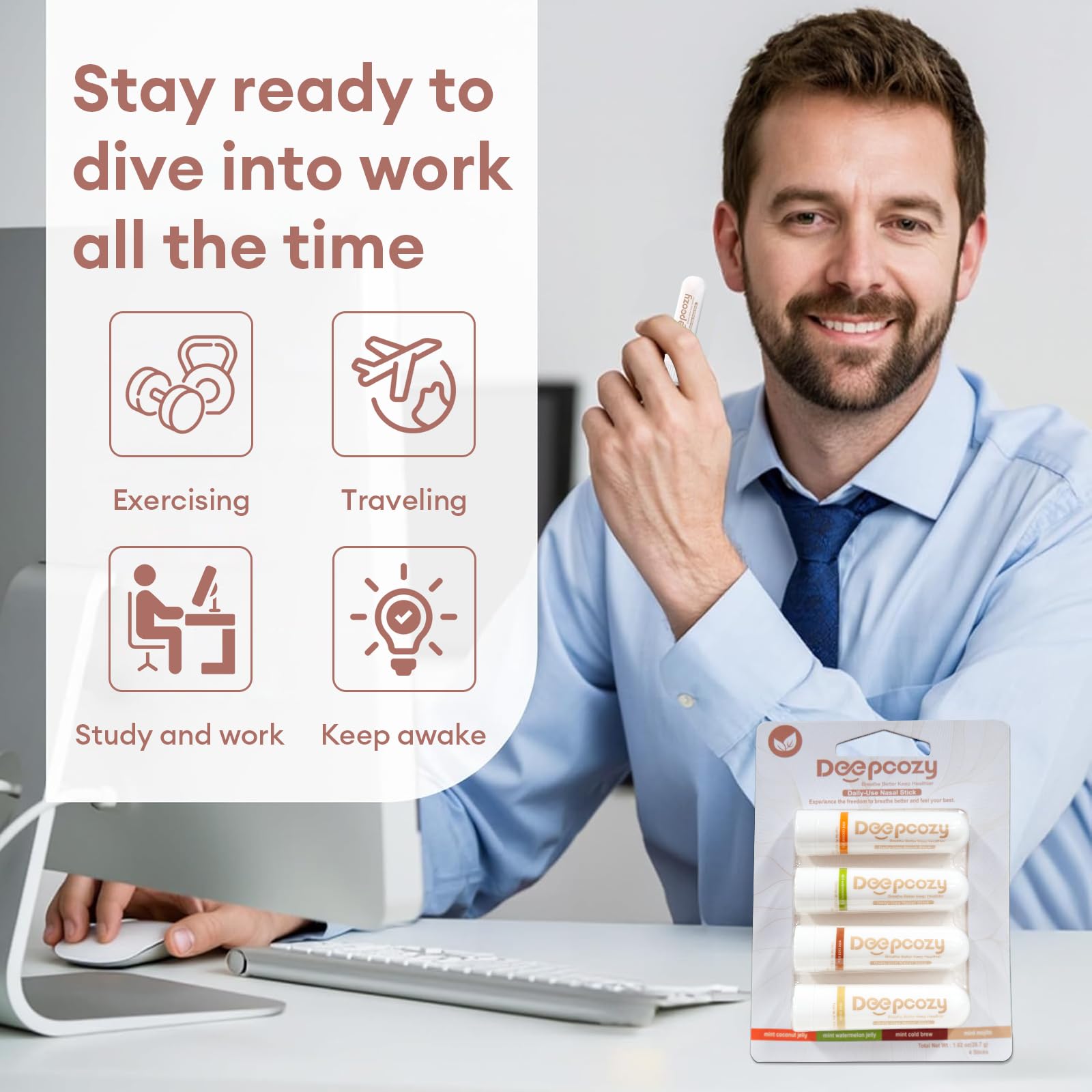 - Natural Respiratory Refreshment: Our pure plant-based formula combines soothing eucalyptus and menthol. Deepcozy nasal stick provides many hours of gentle aromatherapy to clean up brain fog and sharpen focus during study sessions or high-stress workdays.