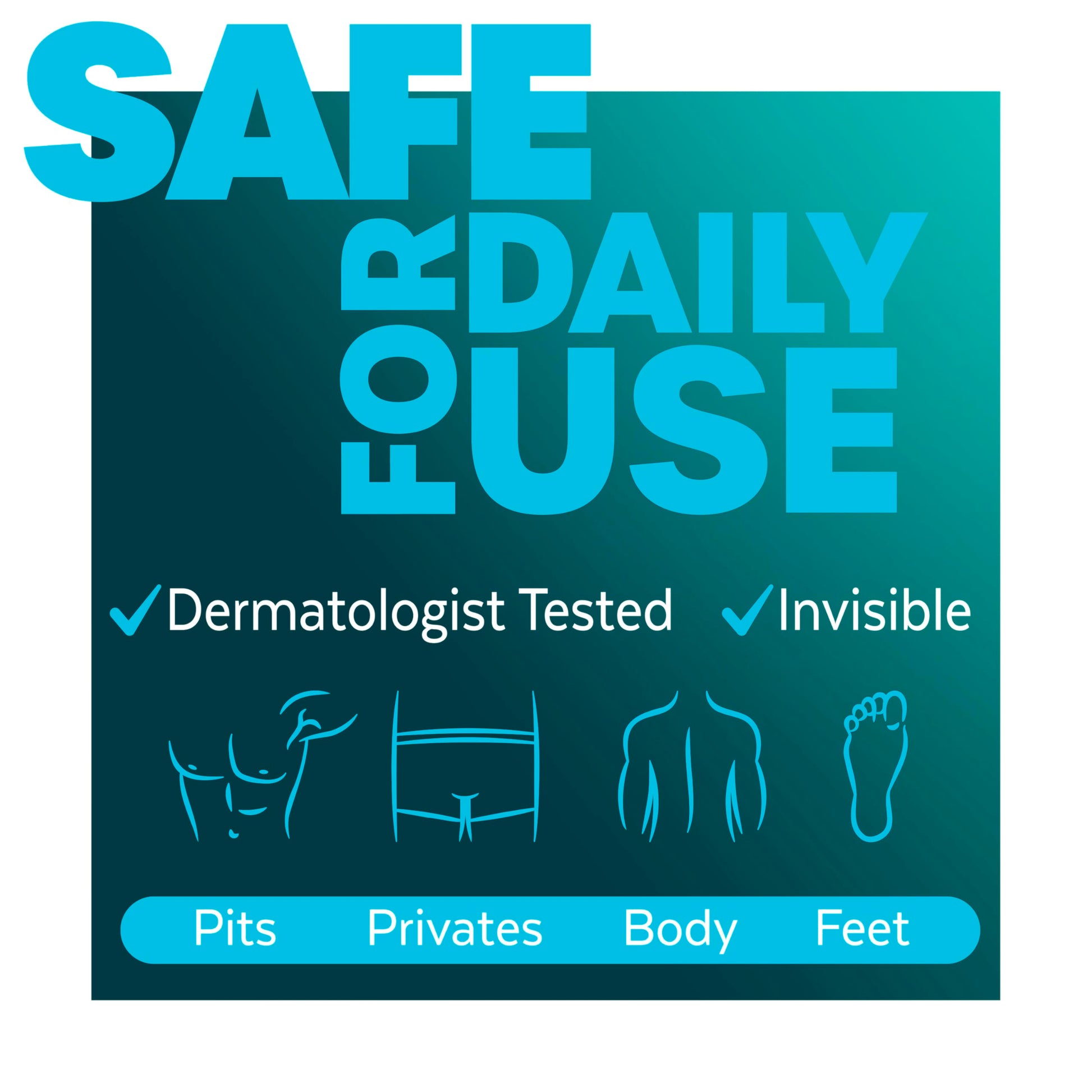 - USE FOR PITS, PRIVATES, BODY AND FEET: Use it anywhere you want to tackle odor, including your pits, privates, body, and feet. Feel fresh and confident throughout the day.