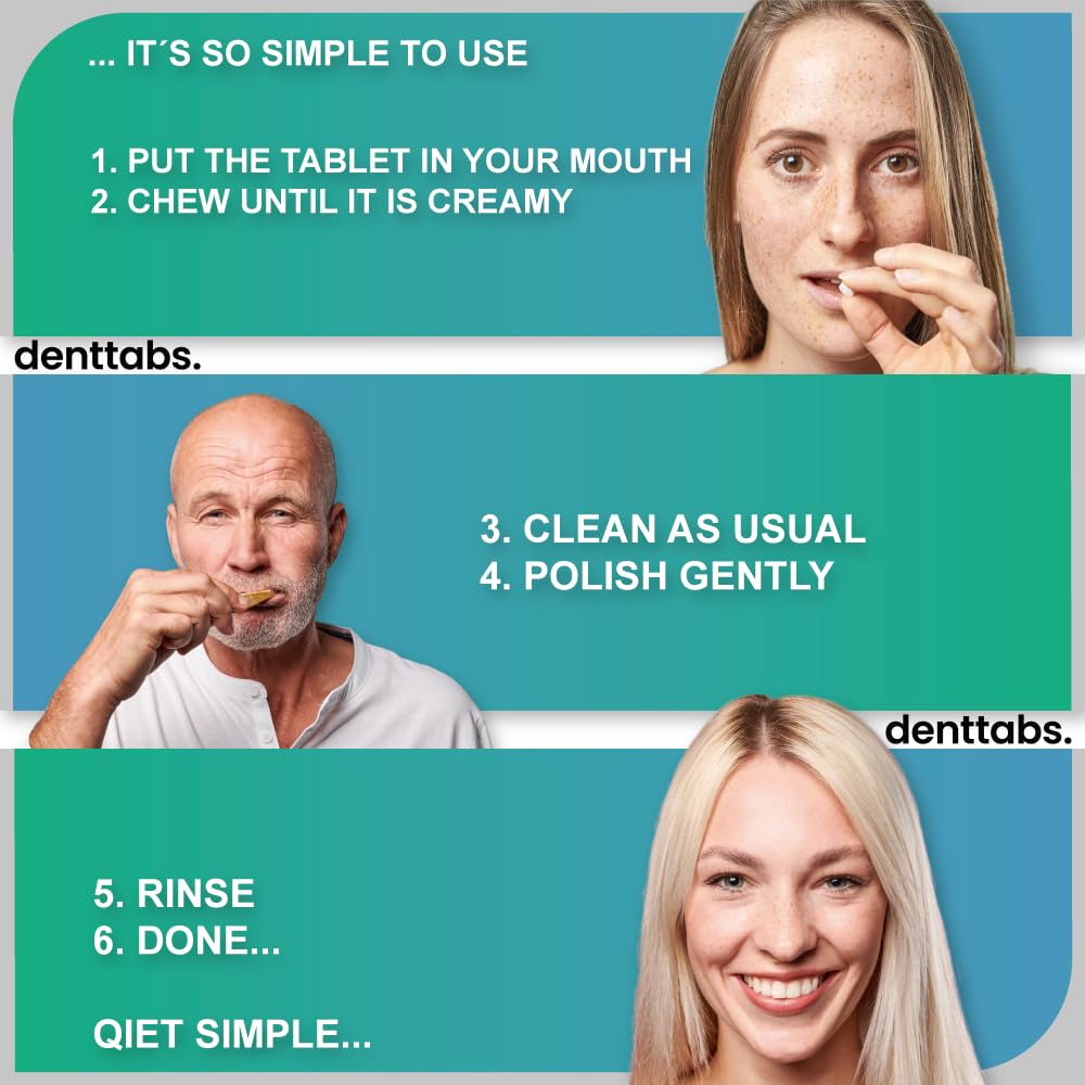 - Clean Teeth: Denttabs tablets help clean teeth and freshen breath.