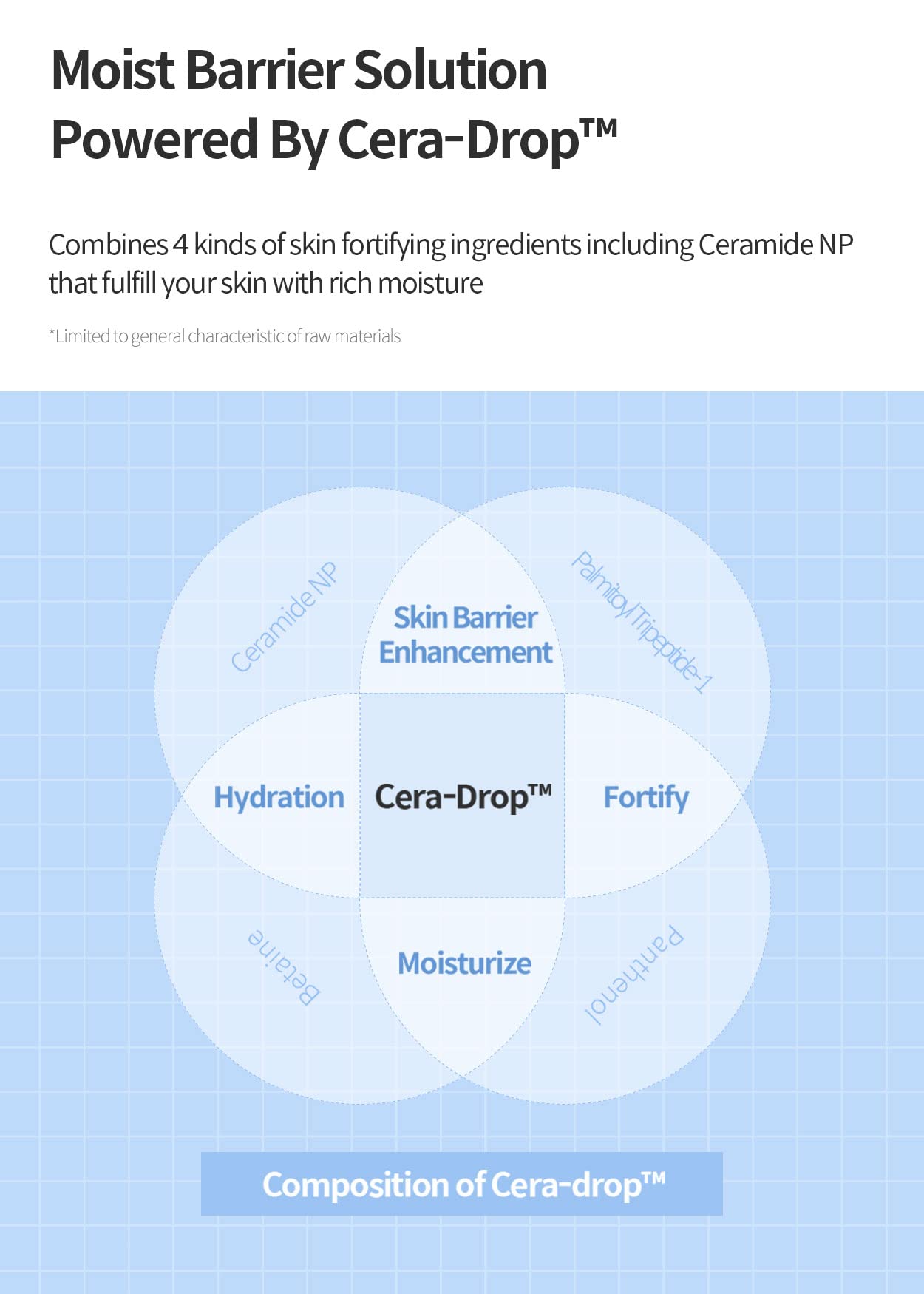 - ADVANCED CERA-DROP RESTORATION. Unleash radiant skin with this hydrating moisturizer facial lotion featuring Cera-Drop, which includes Panthenol for enhanced moisture, Betaine to strengthen the skin barrier, Ceramide NP for moisture balance, and Palmitoyl Tripeptide-1 for improved elasticity and fine line reduction.