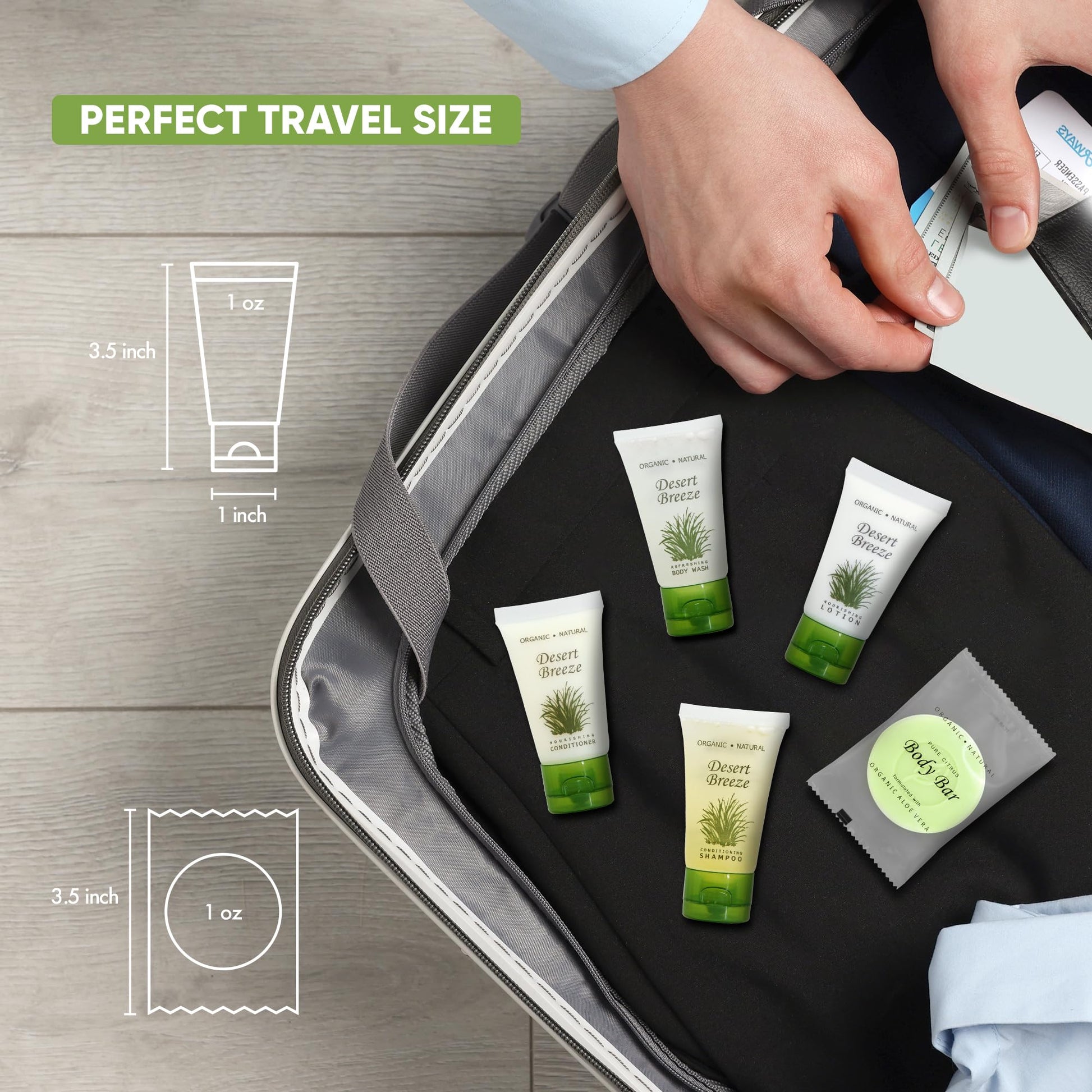 Desert Breeze Hotel Soaps & Toiletries Bulk Set | 1-Shoppe Amenities Kit | 1oz Shampoo & Conditioner, Body Wash, Lotion, Bar Soap | Travel Size | 75 Pieces