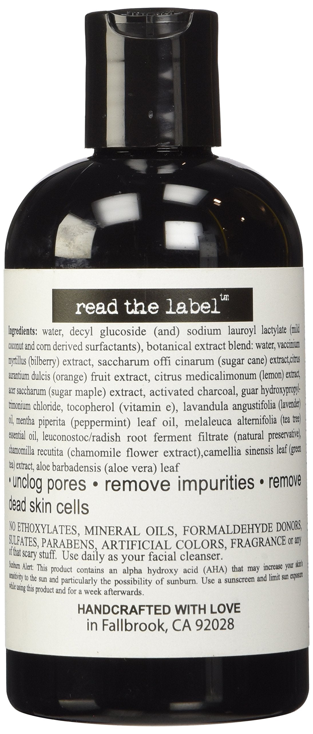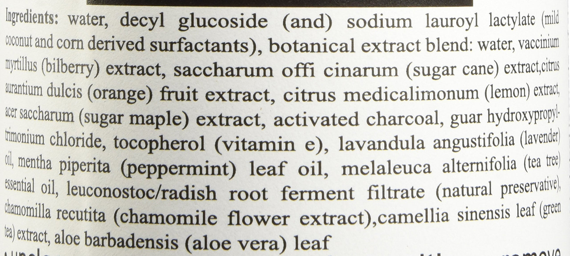 Details: No ethoxylates, mineral oils, formaldehyde donors, sulfates, parabens, artificial colors, fragrance or any of that scary stuff. This gentle, yet effective cleanser out performs many of the high end chemical derived products on the retail shelves today. Charcoal facial detox is formulated to clarify the skin with the best that nature has to offer. With activated charcoal, naturally derived gentle and mild cleanser that also offers smoothness and hydration, aloe vera to soothe and nurture, green tea and chamomille extract for anti-oxidant protection, extracts of billberry, sugar, bitter orange and lemon for their cellular refining and toning activity through their natural glycolic, lactic and tannic acid, this state-of-the-art facial detox leaves your skin feeling smooth and supple with a healthy and radiant glow. To use: use daily to gently exfoliate and rejuvenate without irritating or damaging skin. Pre-moisten face, apply cleanser, massage gently and rinse throughly. Avoid getting into eyes. Discontinue use if irritation occurs. Ingredients: water, decyl glucoside (and) sodium lauroyl lactylate (mild coconut and corn derived surfactants), botanical extract blend: water, vaccinium myrtillus (bilberry) extract, saccharum offi cinarum (sugar cane) extract,citrus aurantium dulcis (orange) fruit extract, citrus medicalimonum (lemon) extract, acer saccharum (sugar maple) extract, activated charcoal, guar hydroxypropyltrimonium chloride, tocopherol (vitamin e), lavandula angustifolia (lavender) oil, mentha piperita (peppermint) leaf oil, leuconostoc/radish root ferment filtrate (natural preservative), chamomilla recutita (chamomile flower extract),camellia sinensis leaf (green tea) extract, aloe barbadensis (aloe vera) leaf for greener tomorrow, our label stock is made out of stone and it is 100% tree free.