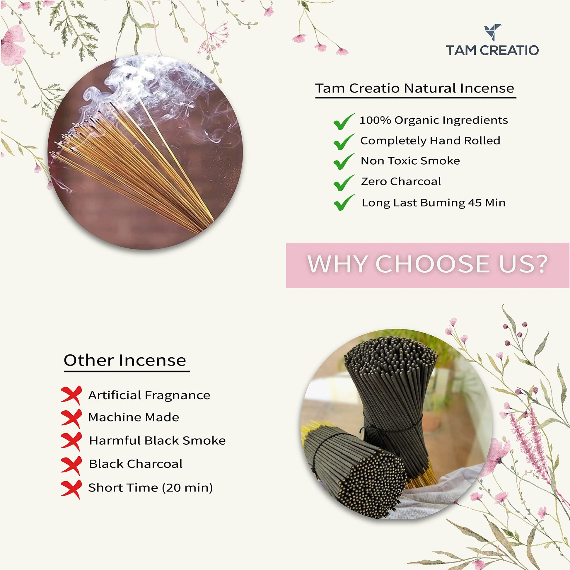 - IMPROVES CONCENTRATION: Our fragrances have a gathering effect on the mind. The calming scent of these incense sticks allows the mind to center the thoughts, improve concentration, and deepen connection with the universe.