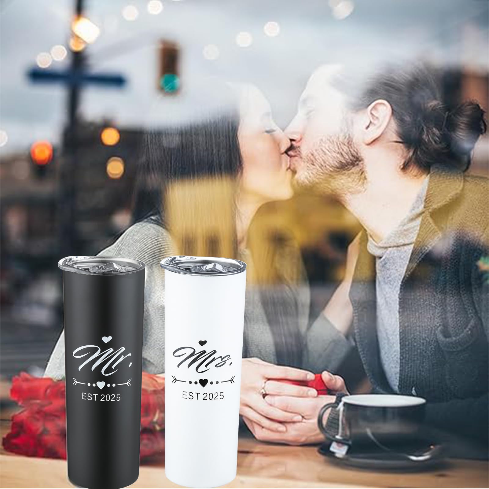 DHQH Mr and Mrs 2025 Tumbler Set, Engagement Wedding Gifts for Couples Wife Husband Bride To Be Newly Engaged 20oz Travel Tumbler Bachelorette Party Gifts