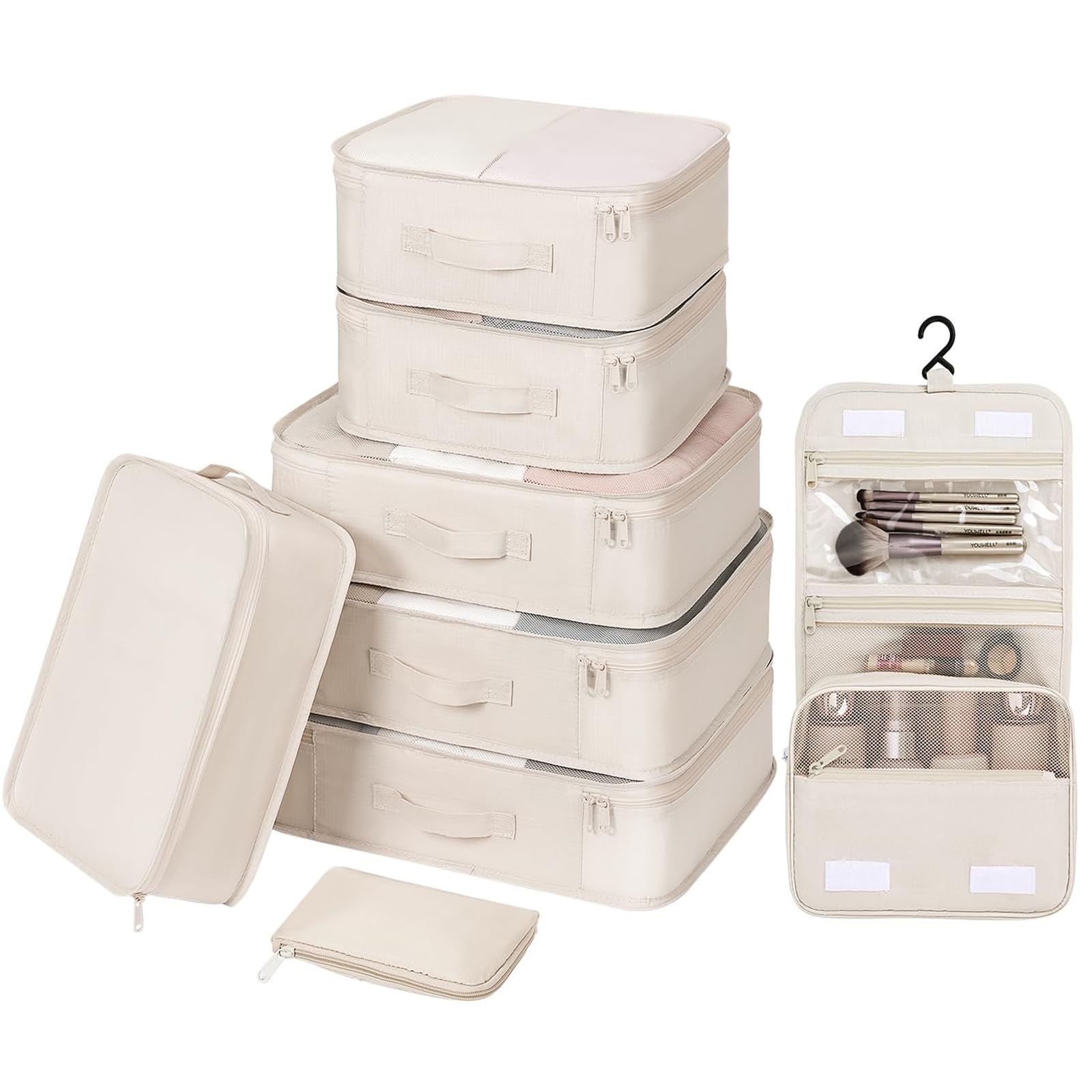 DIMJ Packing Cubes for Travel - Organizer Bags Set for Carry on Suitcase Lightweight Travel Cubes for luggage with Large Toiletries Bag (Cream)