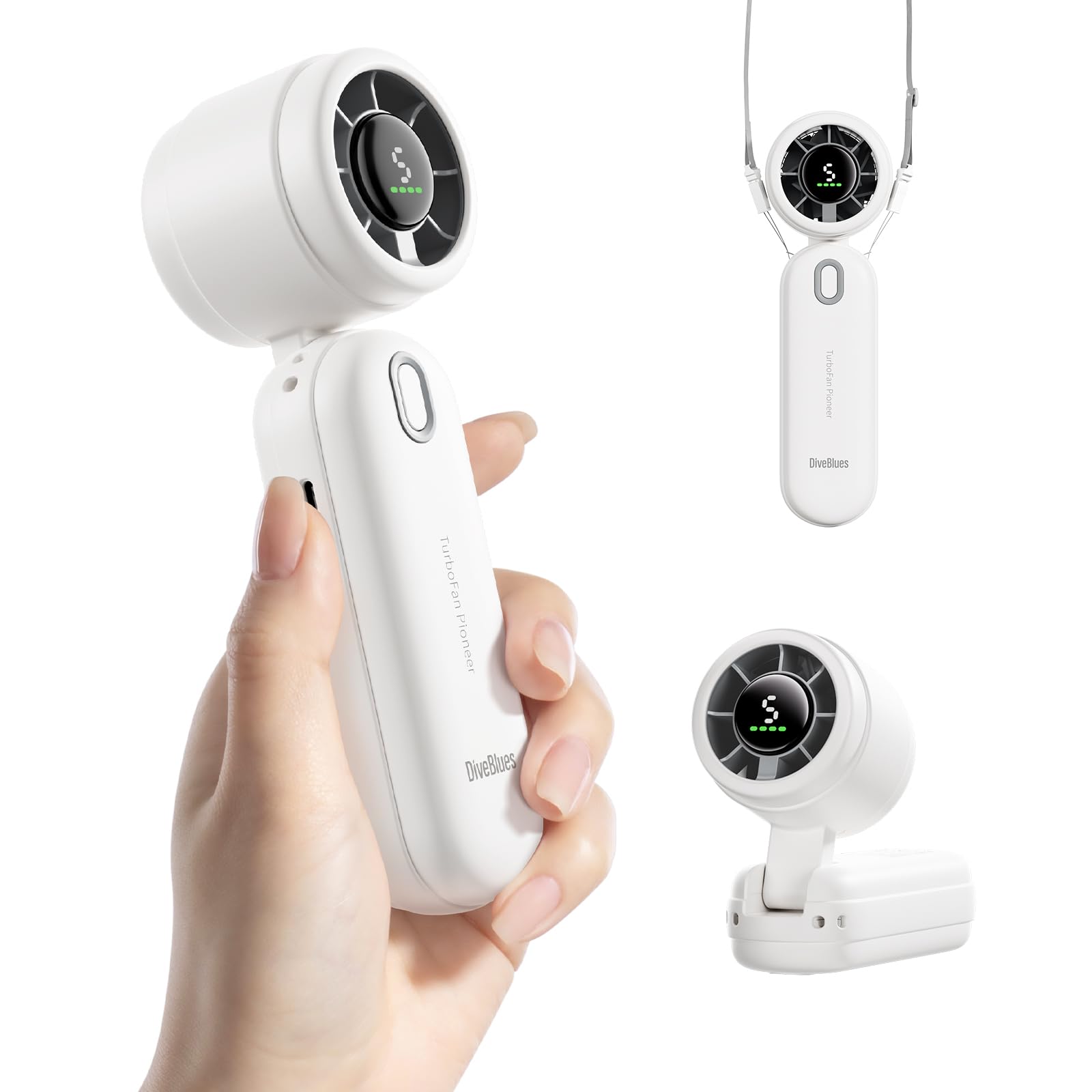 Diveblues High-Speed Portable Handheld Turbo Fan, USB Rechargeable Battery Powered, Small Portable Pocket Fan for Travel, Outdoor, Home, Office, Concerts, Lash, Gift for Women(White)