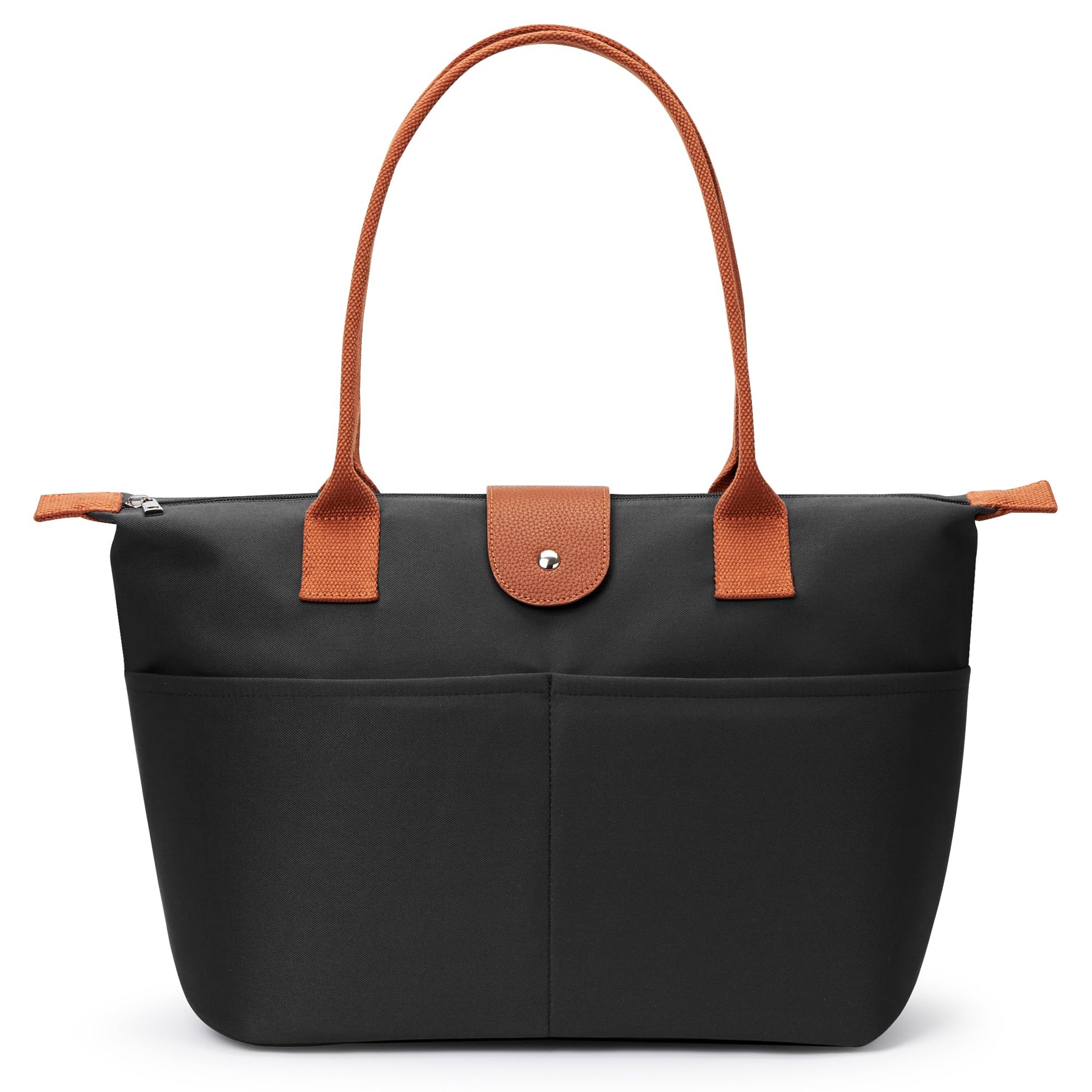 - Structured Design with Smart Organization: This structured work tote bag features a thoughtful layout to keep organized. The rigid base ensures it stands upright. Inside, you’ll find 2 slip pockets (for phone, card) and 1 zipper pocket (for valuables), plus an external back pocket for quick access to keys or a transit card, another external zipper bag enables you to easily access small items. The tote bag eliminates messy digging, making it perfect for women or students juggling books and tech.