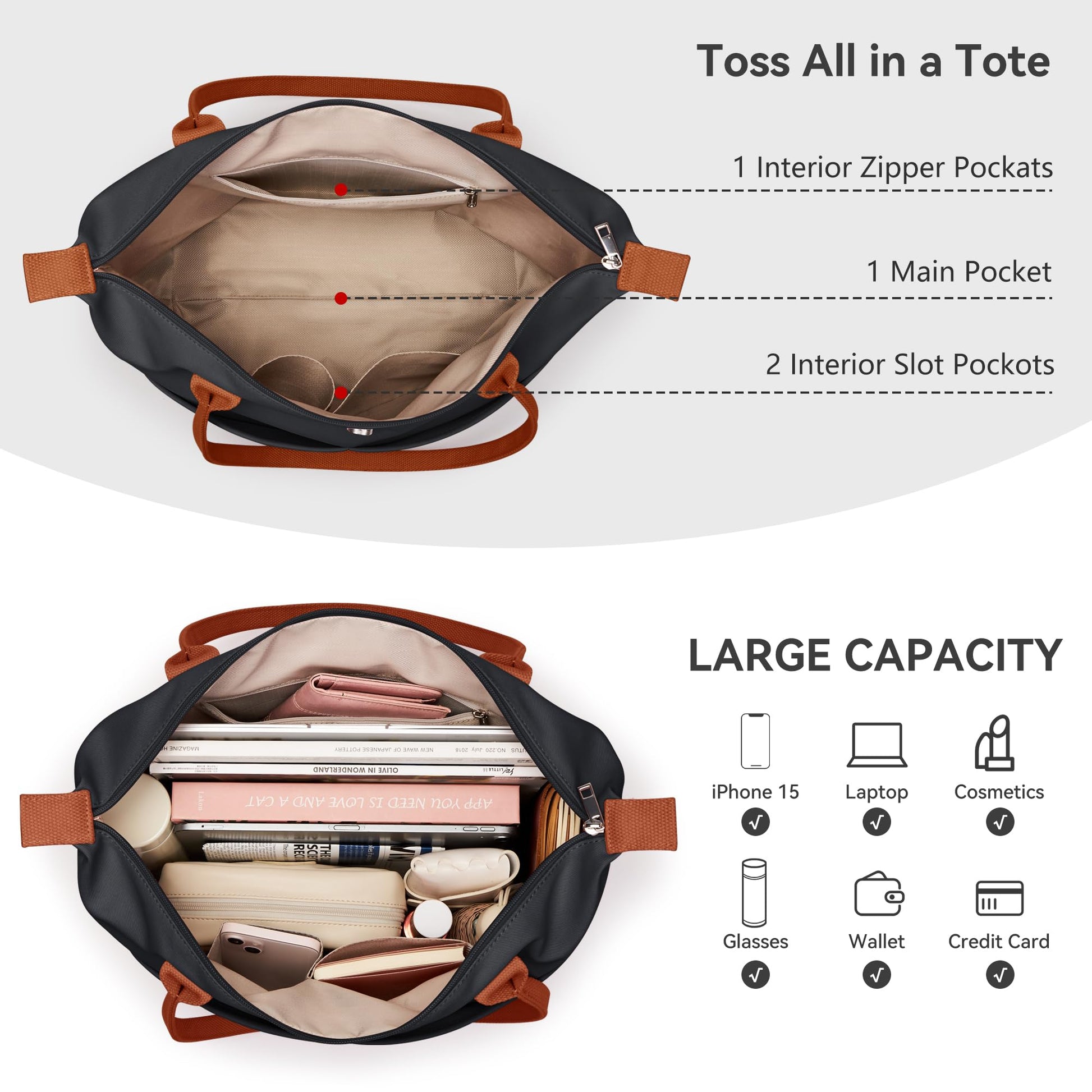 - Versatile for Every Occasion: More than just a tote bag for women, it’s a multi-tasker for any scenario. Use it as a work bag to carry documents, a travel tote bag for short trips, or a casual shoulder bag for weekend outings. The sleek design complements both professional attire and casual outfits, making it a go-to choice for work, shopping, gym sessions, or coffee runs.