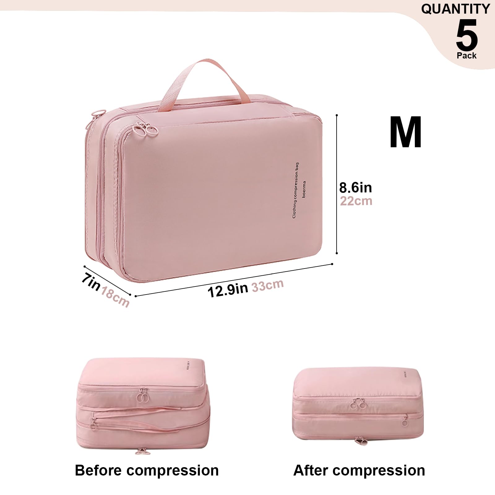 Double-Layered Compression Packing Cubes for Travel, Luggage Organizer Bags Compressible for Suitcase Packing Bag Travel Accessories, Pink, M