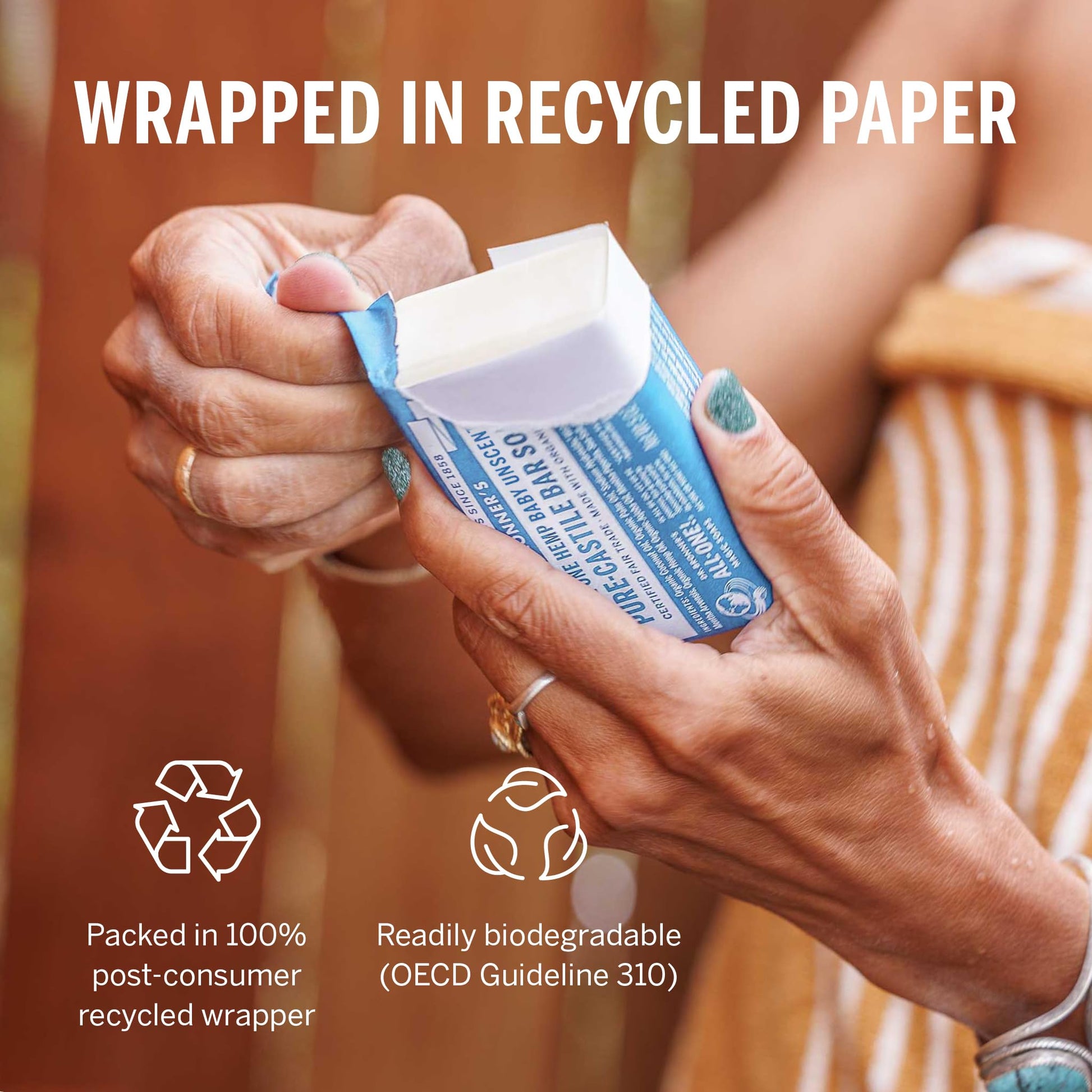 - PACKAGED IN POST-CONSUMER RECYCLED WRAPPERS: Every baby unscented soap bar is wrapped in recycled paper, helping reduce landfill waste. Our packaging supports a circular economy and cleaner planet