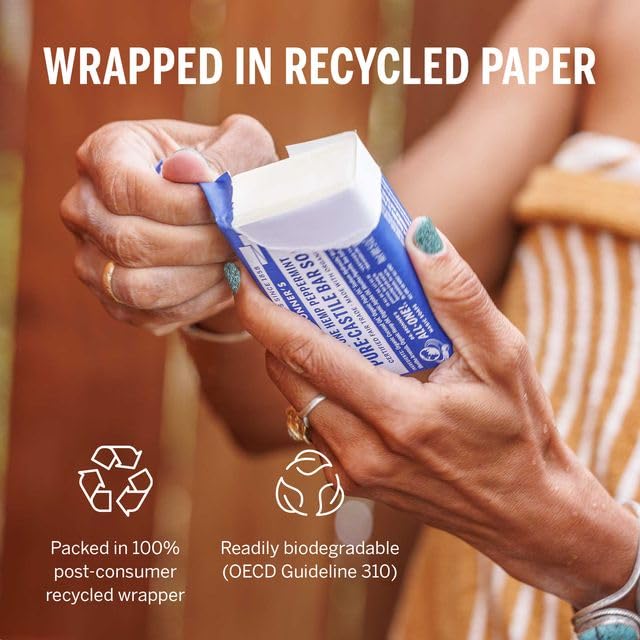 - PACKAGED IN POST-CONSUMER RECYCLED WRAPPERS: Dr. Bronner's is diverting discarded paper waste from landfills by using and increasing demand for recycled materials. This prevents landfill buildup and has a positive environmental impact!