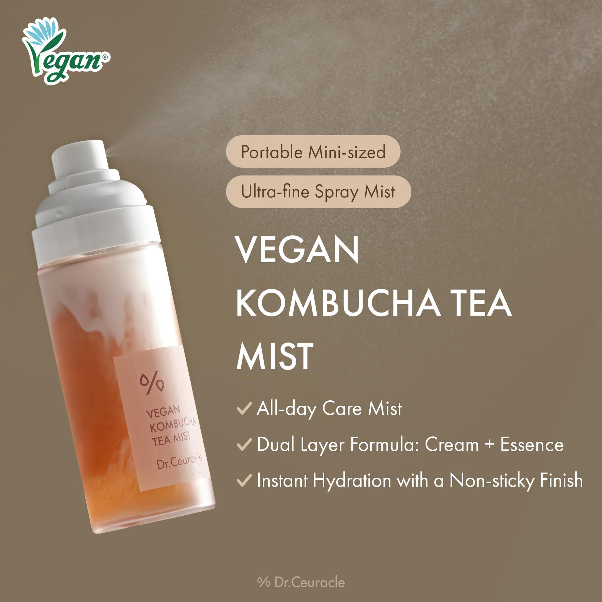 Dr.Ceuracle Vegan Kombucha Tea Mist - Hydrating Face Mist, Portable Milky Spray Serum, Korean Skincare (80 ml / 2.70 fl. oz.)