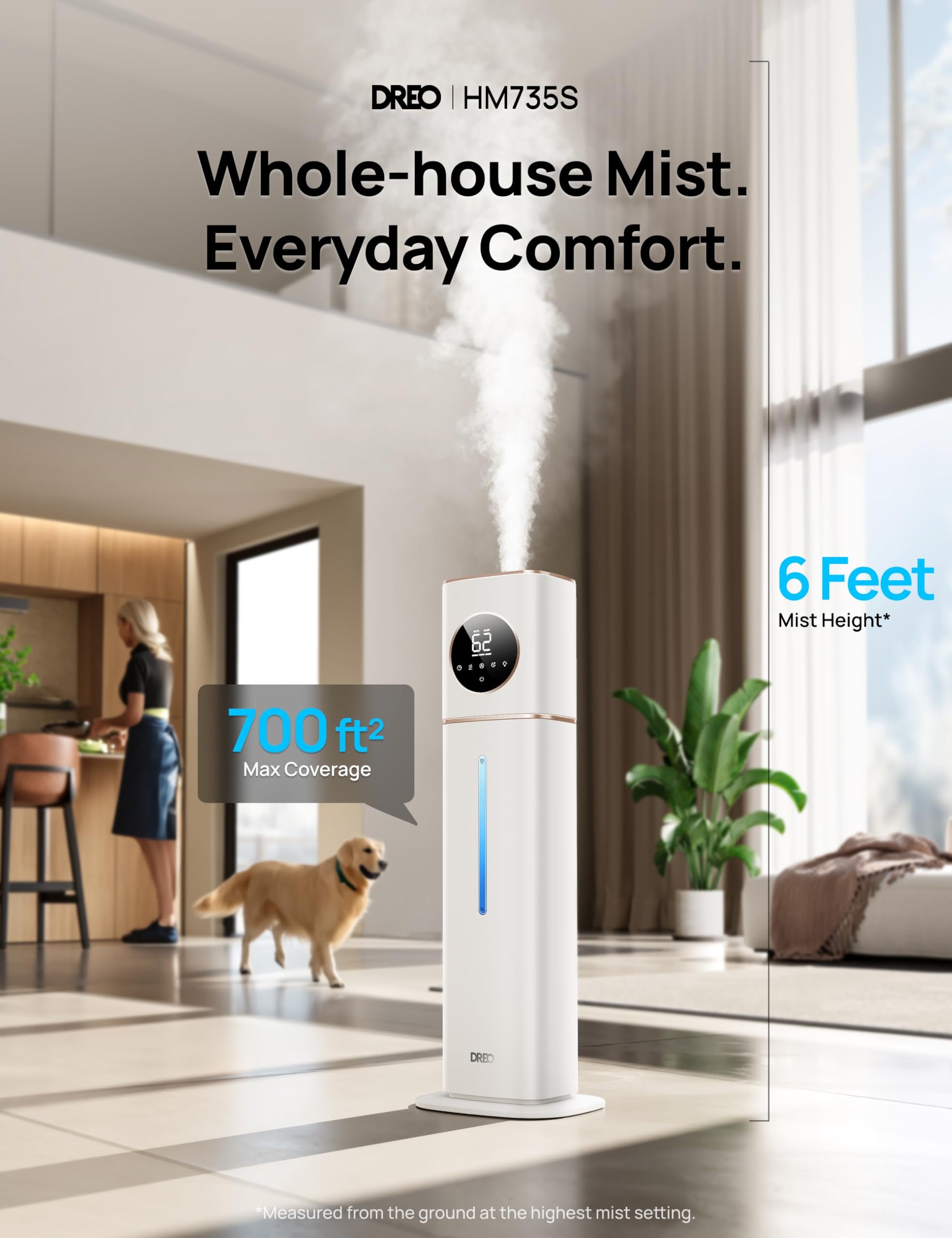 - Whole-room Coverage, Whole Family Rapid Comfort: Our humidifier efficiently covers up to 700 ft² large room, delivering over 6 ft. of mist height with a 3,900 RPM high-speed motor. Experience fast, even humidity that reaches every corner of your space for ultimate comfort