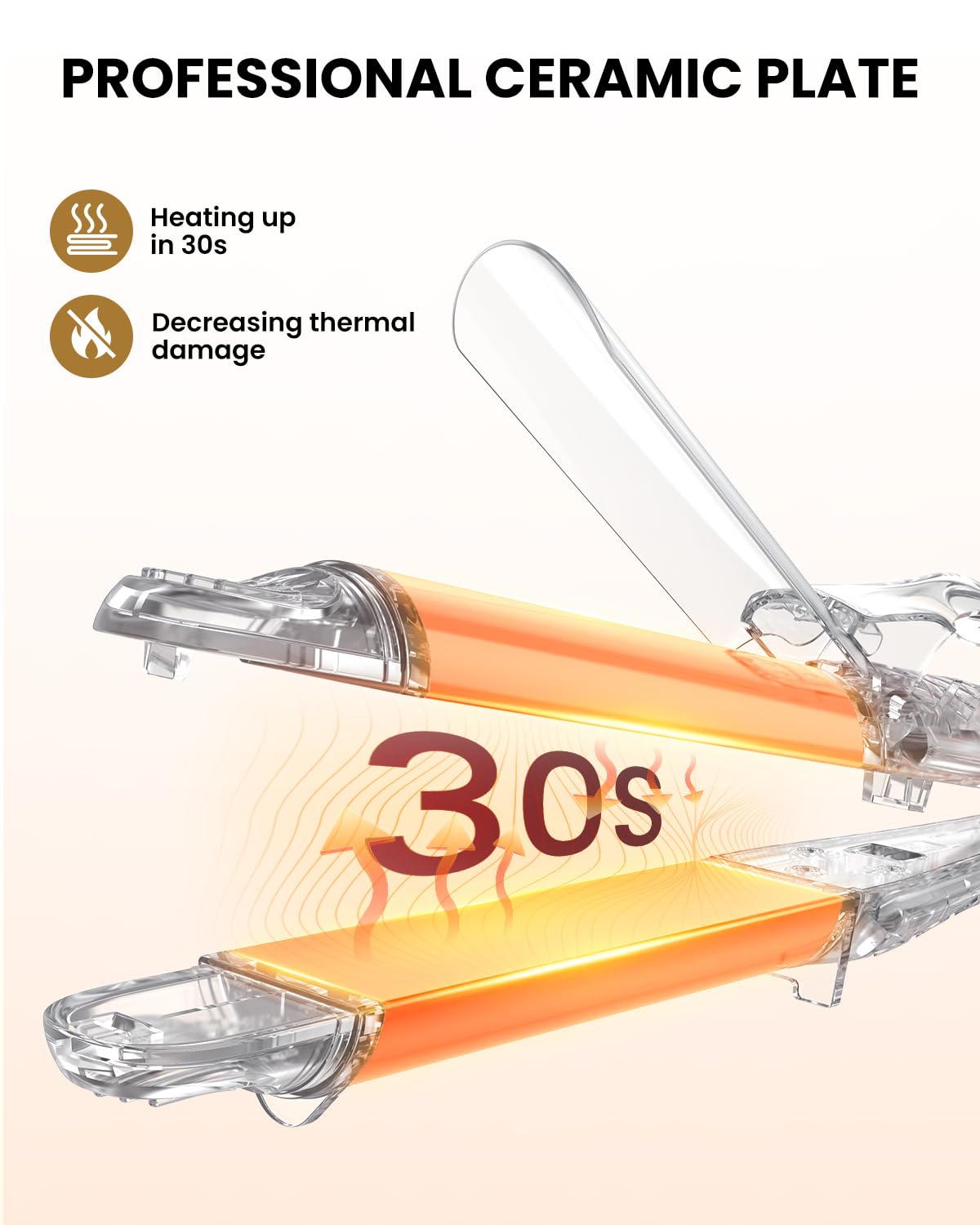 - [390°F & 30S Heating] The flat iron is equipped with PTC rapid heating technology,30 seconds fast heating set 390°F strong heat, plug in and heat up instantly. This european curling iron features a titanium barrel that heats up evenly and smoothly for effective hair protection and quick frizz repair.