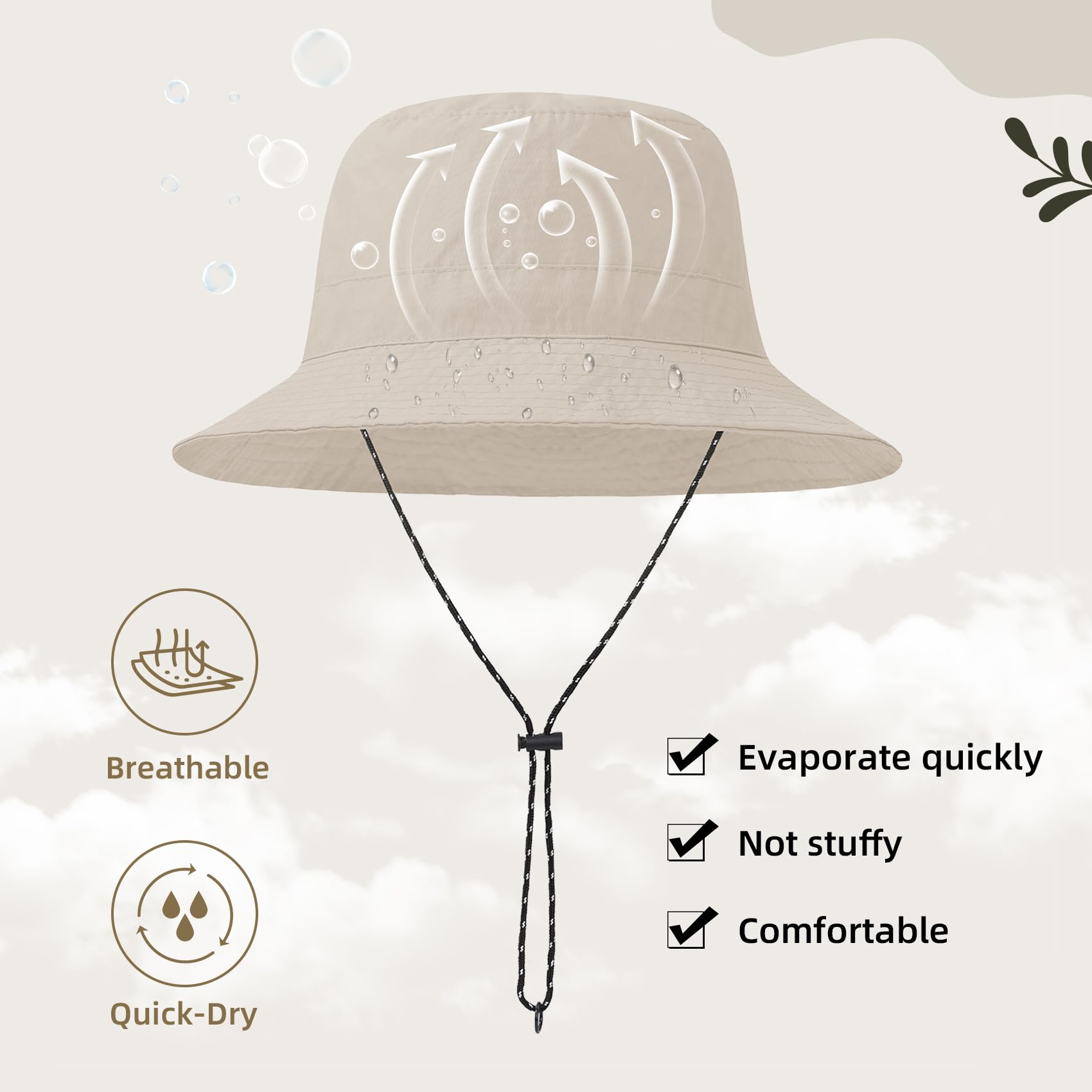 - Adjustable Size - The head circumference of this waterproof sun hat is 22.8'', which fits most people. There is an adjustable elastic drawstring on the top of the brim, which can be adjusted to a comfortable size for wearing