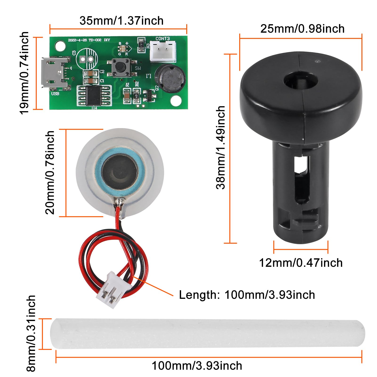 - ❃❃Application: Ultrasonic mist maker is a humidifier DIY kit, which is widely used in atomization equipment such as USB humidifier, perfume atomizer, aromatherapy atomizer, etc.